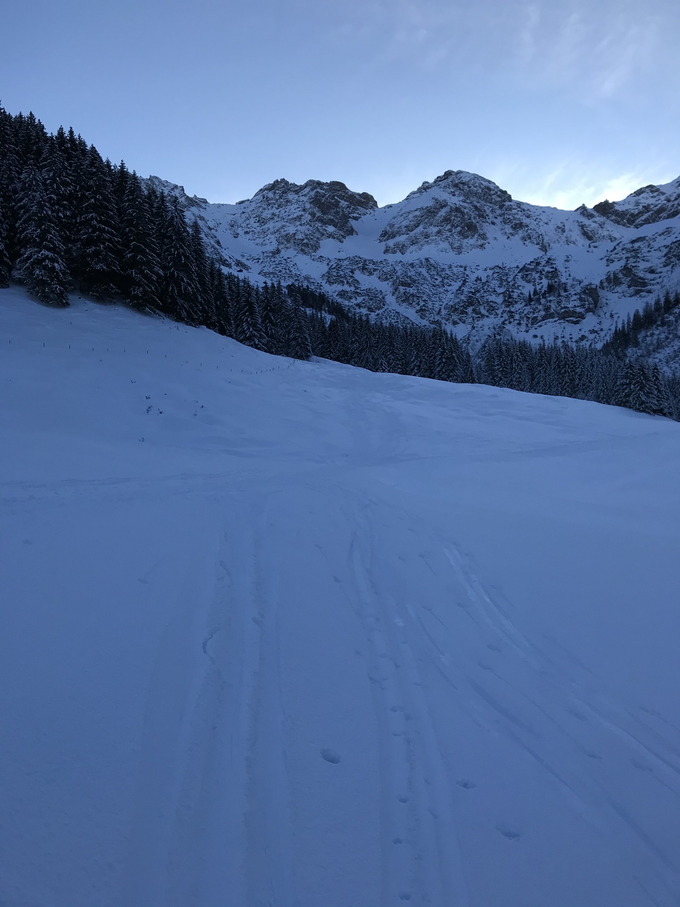 Zur Tour selbst: ab Parkplatz Bergheim Moser (Parkgebühr 4,- im Bergheim zu bezahlen) ordentlich und ausreichend Schnee. Start um 9:00Uhr bei -5 Grad. Auch durch die Latschen ausreichend Schnee und gut zu gehen. Ochsenloch und Schafalpenköpfe wurden heute auch gemacht.
