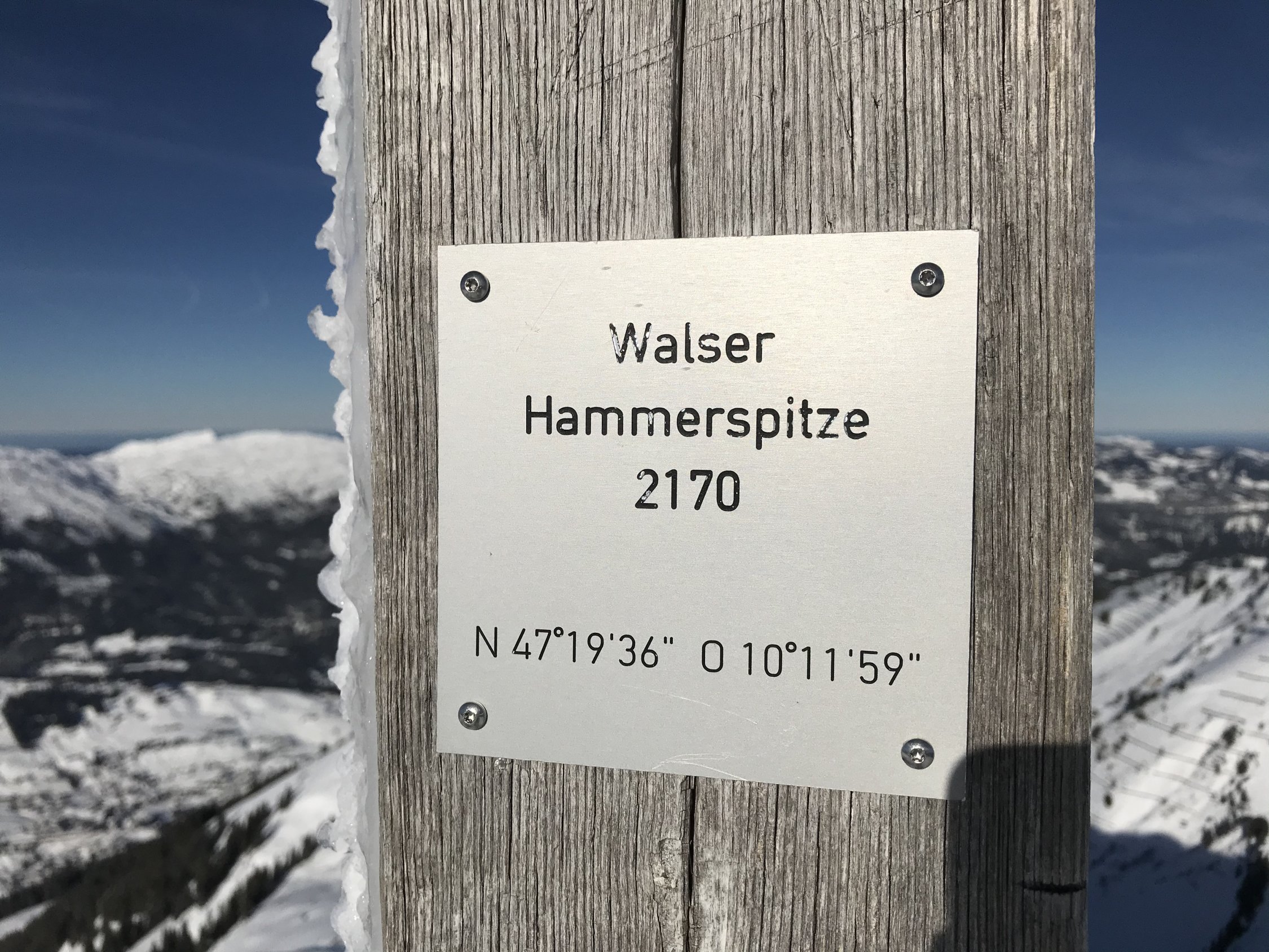 Da es aus den Karten immer wieder zu Verwirrung kommt: die Walser Hammerspitze wird in Deutschland Schüsser genannt. andersrum wird der Übernächste Berg in der Kette von Österreich Schüsser genannt und von Deutschland mit Hammerspitze betitelt. Wie auch immer - es sind auch jeden Fall Traumhafte Berge ;-))