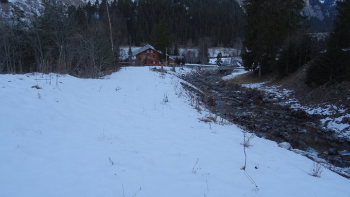 Start beim alten Schulhaus ist der Schnee sehr knapp am besten rechts des Gurbsbaches starten, danach über die ersten weiden hoch