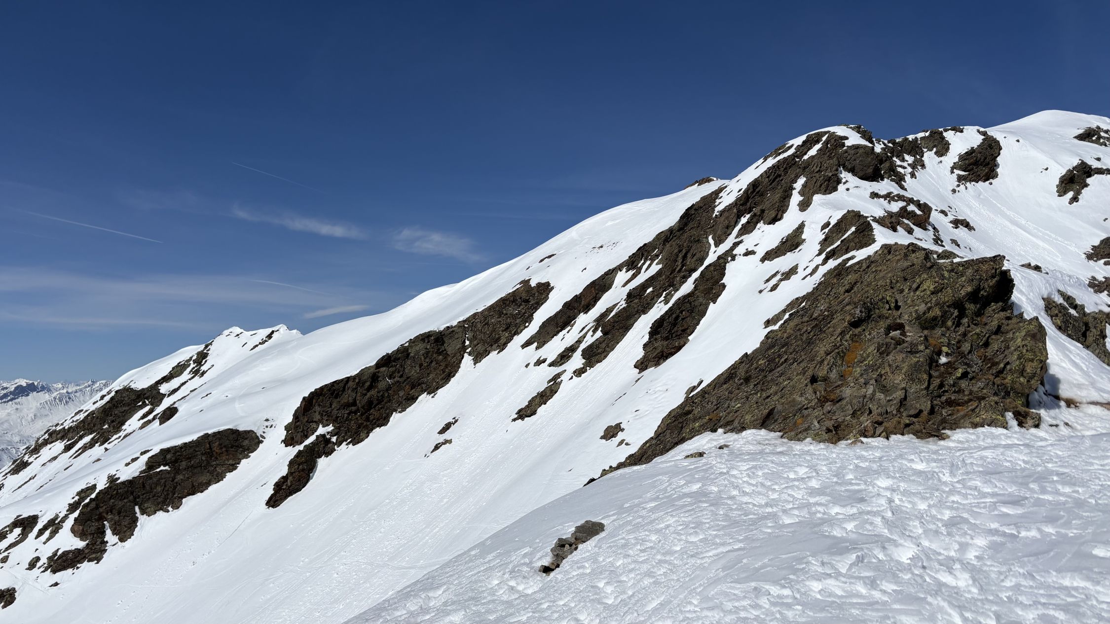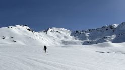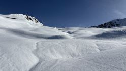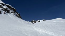 Die letzten 200 Höhenmeter können südwestlich gewählt werden, so dass wiederum griffiger Sulz zum Genuss zur Verfügung steht.