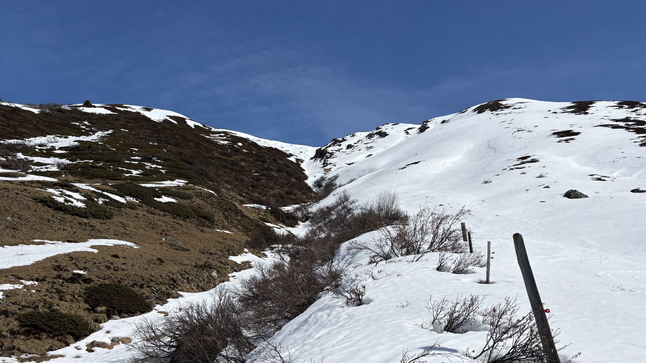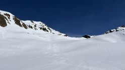 In der Gipfelflanke ist eine sehr gute alte Spur hilfreich.