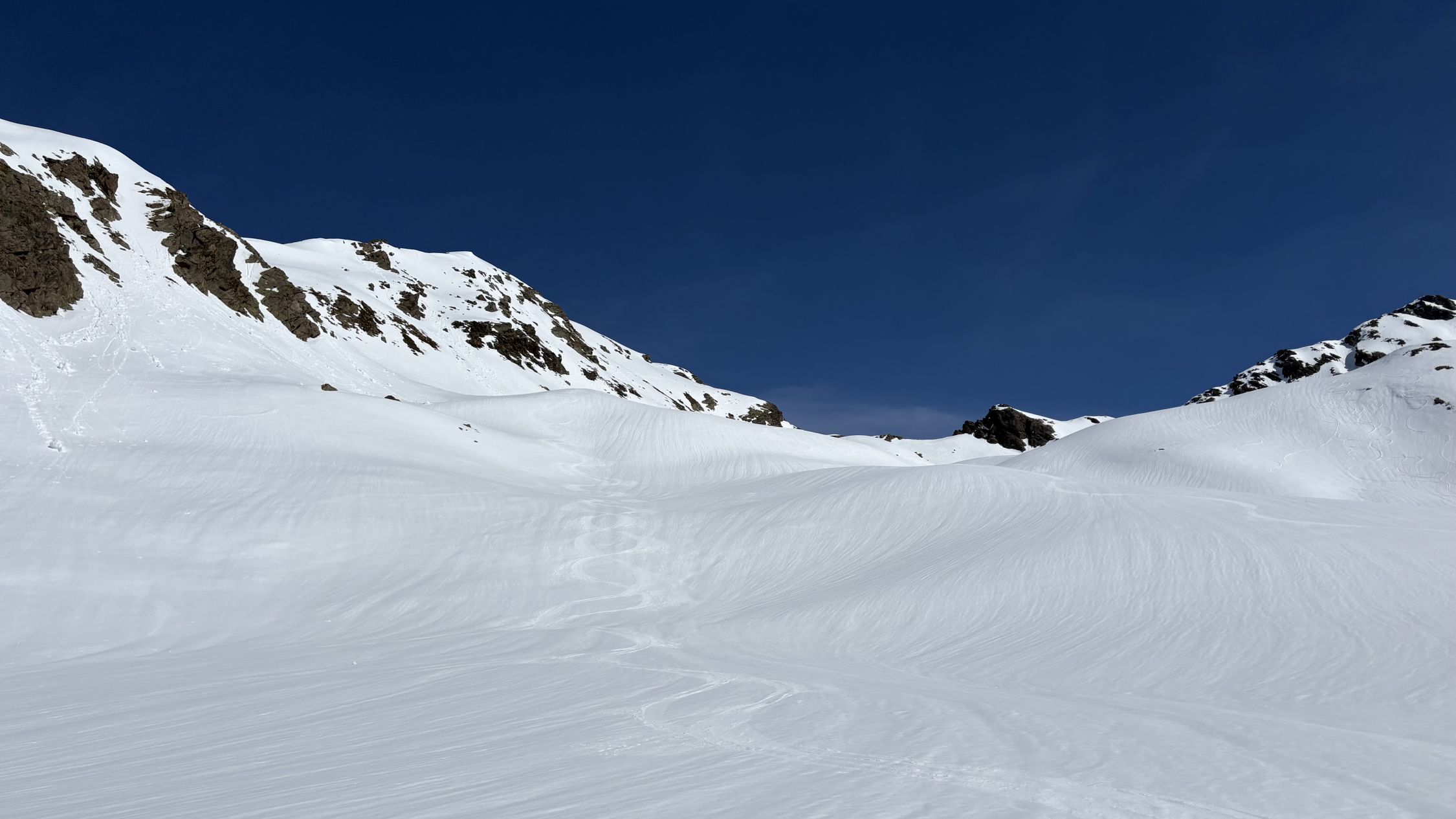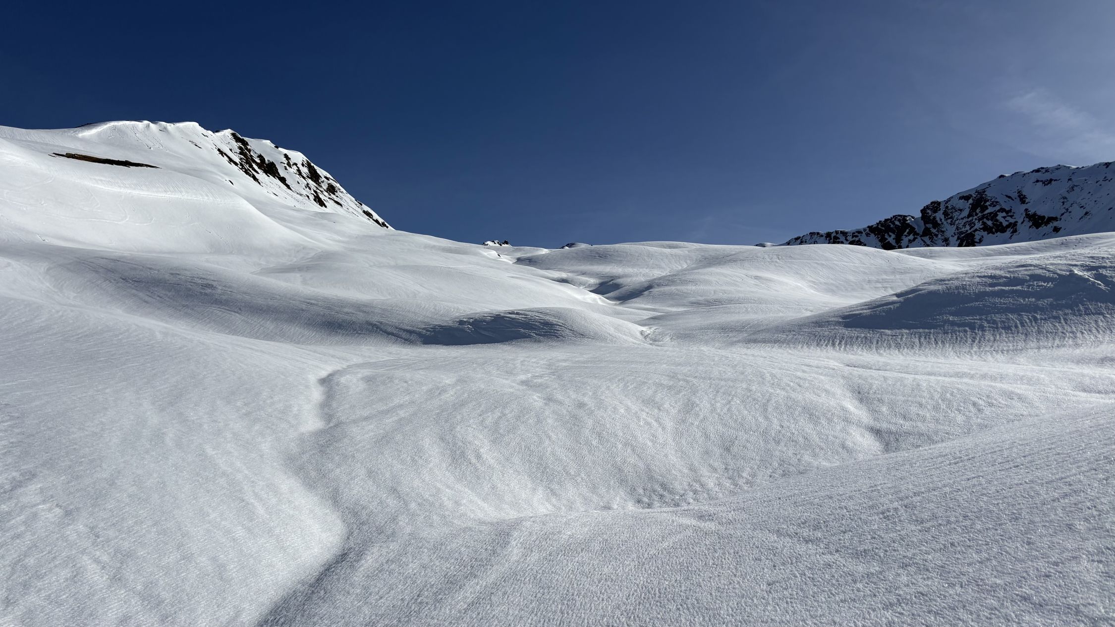 Durchs Mattjischtälli hat es kaum alte Spuren sichtbar, ein weisser Teppich, wie es sein sollte.