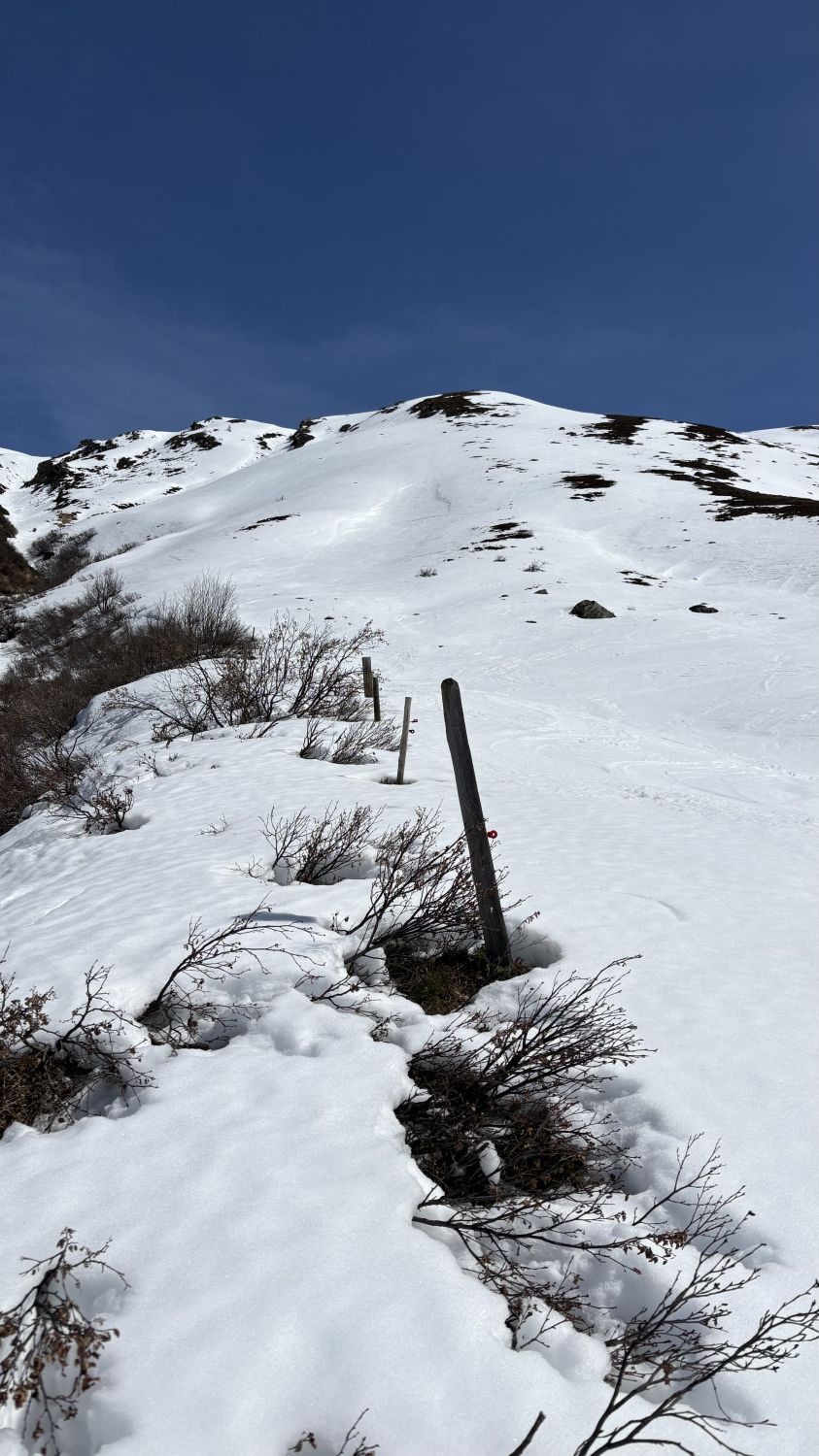 Der Aufstieg ins Isenfürggli ist kurz und knackig in sog. Umbruchschnee (zum Abfahren im Moment nicht zu empfehlen).