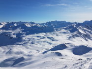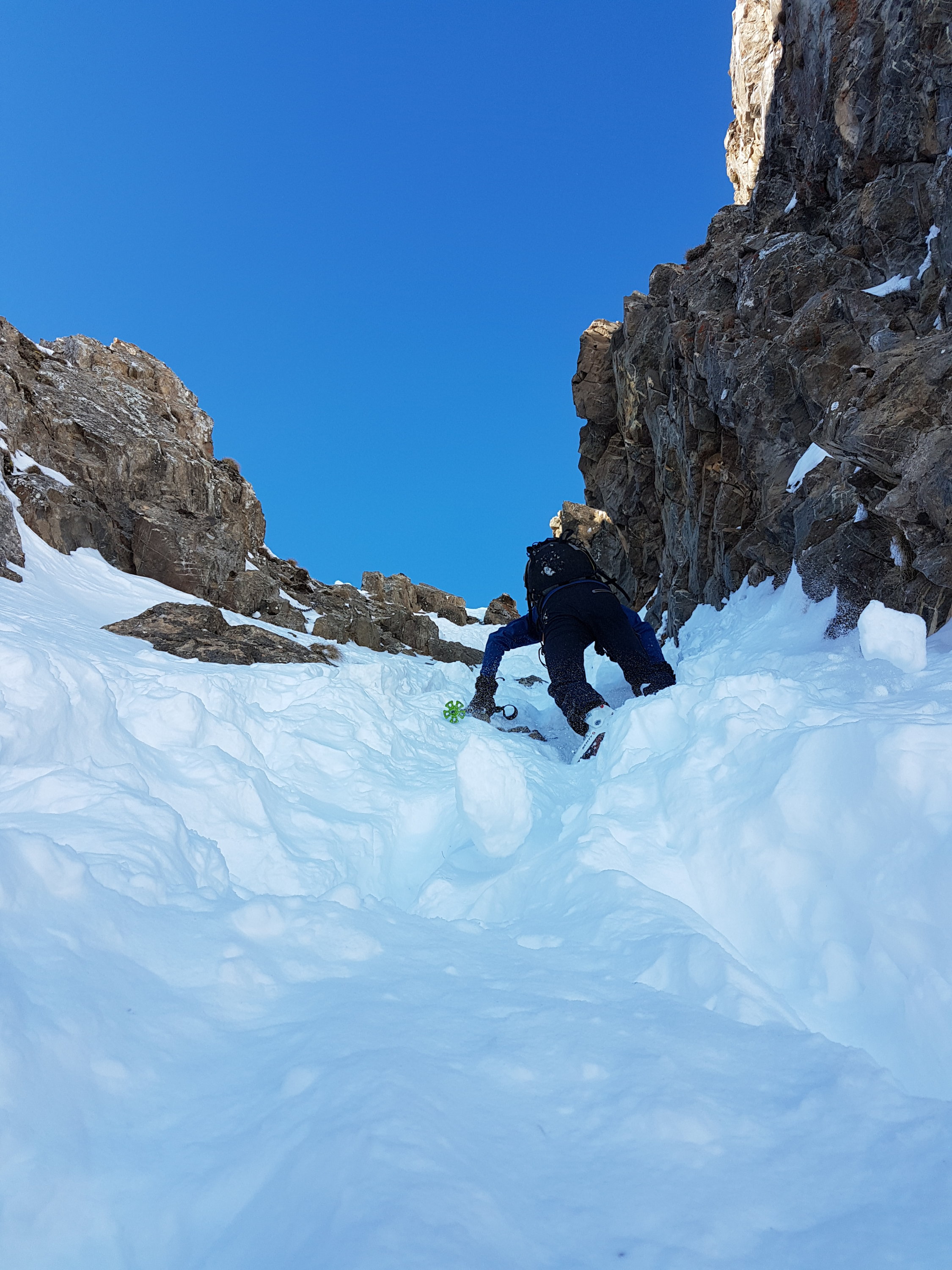 Dann rüber zum Couloir Spitzmeilen, hier Schnee etwas knapp. Coulloir gut zu gehen, wir sind mit Pickel rauf, geht auch ohne. Ganz oben sind die Ketten frei. Abfahrt dann ostseitig, seidenfeiner Pulverhang, noch etwas hochfellen um auf die Hüttenspur nach Fursch zu gelangen. Zeitweise kalt mit Wind. Alles in allem herrliche Tour.