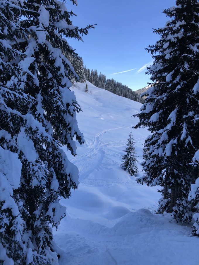 Abfahrt nach diesem Tag weitgehend verfahren. Auch Eggberg ist gut gepflügt.
