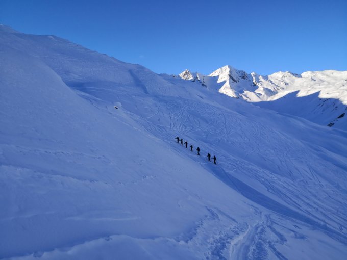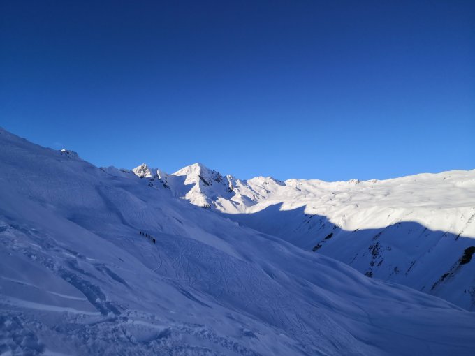 Immer noch Top, Powderhänge aber schon sehr zerfahren.