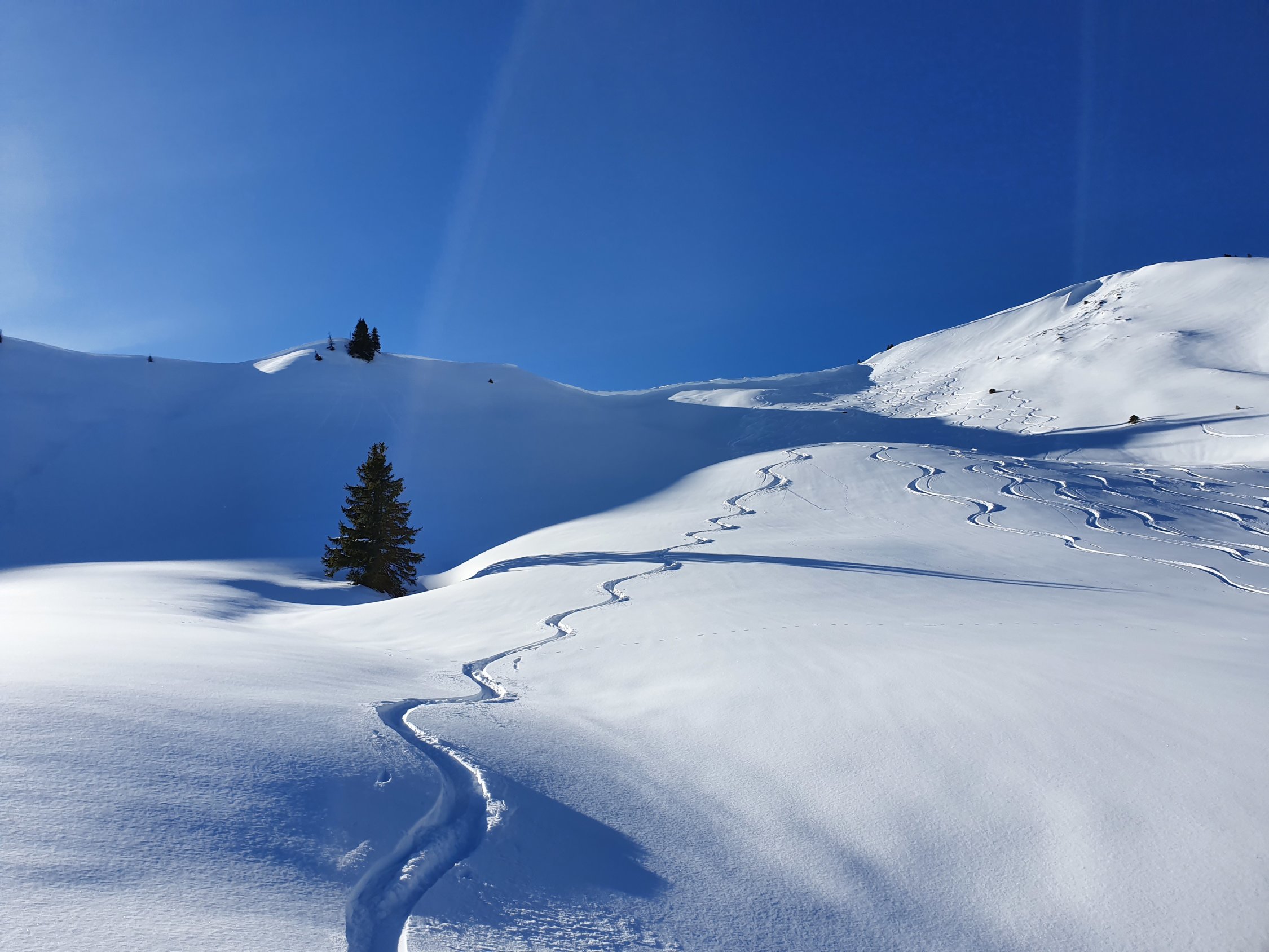 Abfahrt nach Saanenmöser war gut, oben noch etwas Pulver, dann rasch in Nassschnee übergehend, aber noch super zum Fahren.
