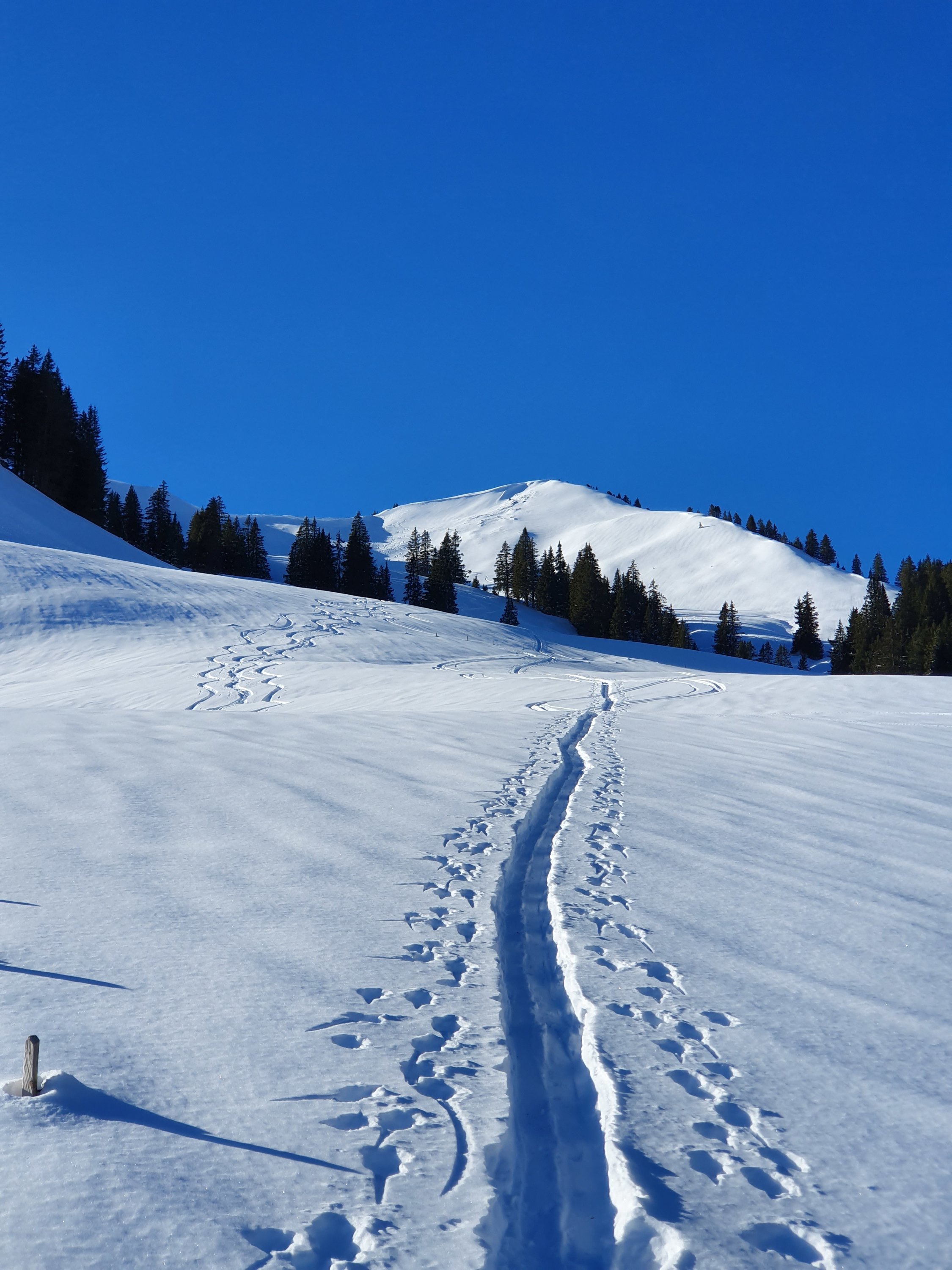Bin vom Gipfel nordseitig abgefahren und habe wunderbaren Pulverschnee ( 20 cm )angetroffen auf einer harten festen Unterlage. Aus Hilbi wieder angefellt und aufgestiegen ( 400 hm)