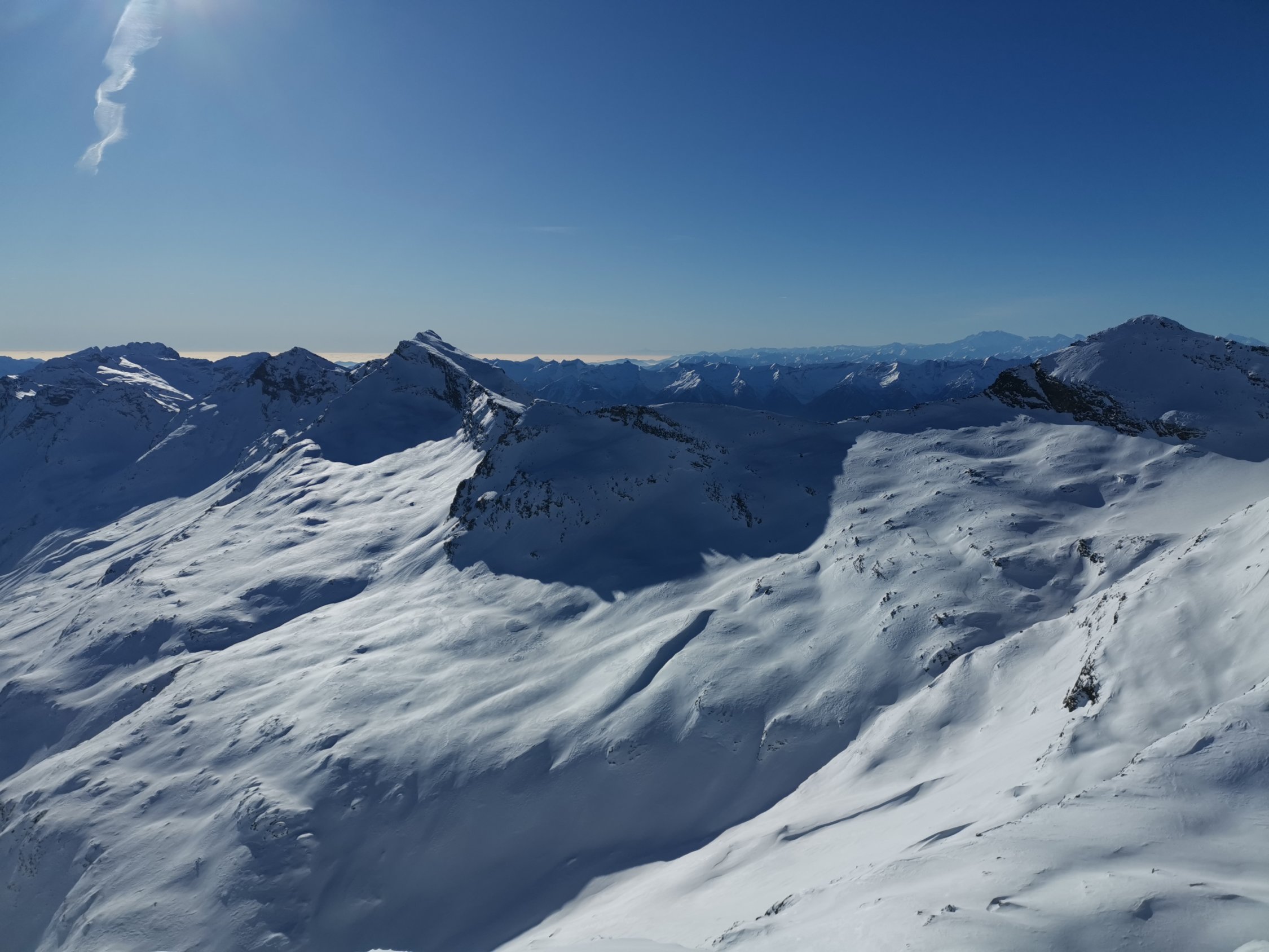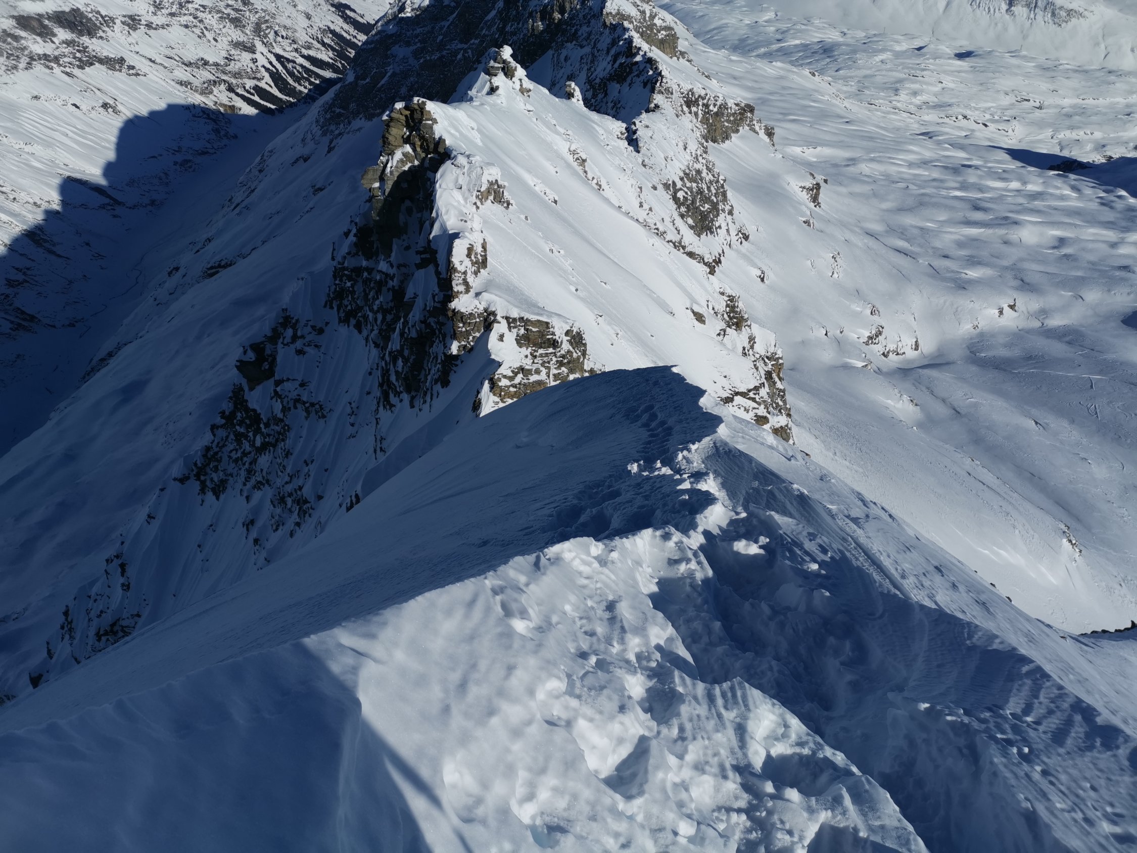 Der Schnee war heute natürlich nicht so besonders. Die Abfahrt war eine Suche nach tragendem Deckel und Pulverresten.