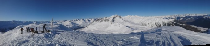 Im Aufstieg mehrheitlich gute Spur von Lü bis auf den Gipfel. Schnee mit zunehmender Höhe vom Wind geprägt, mit Sonneneinstrahlung teilweise vom Vortag leichte Kruste, bis Valbella aber noch mehrheitlich pulvrig.