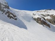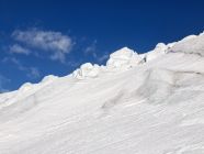Unsichere gehen besser mit aufgebundenen Ski, Steigeisen und Pickel bis es flacher wird.