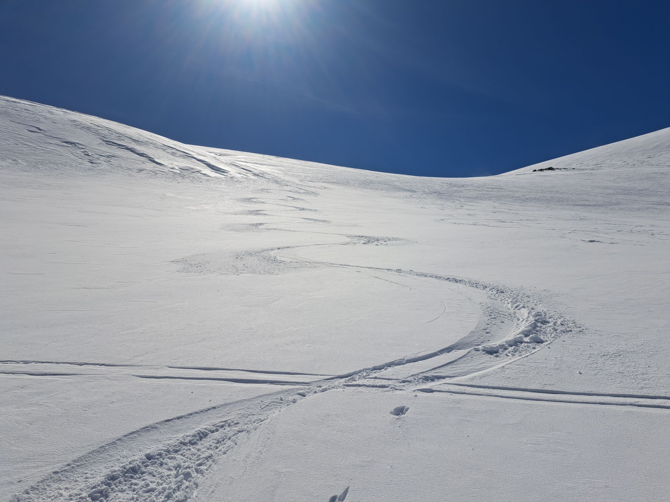 Leider rutschen die vielen Türeler jeweils in der Abfahrt die Aufstiegsspur weg!