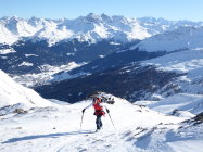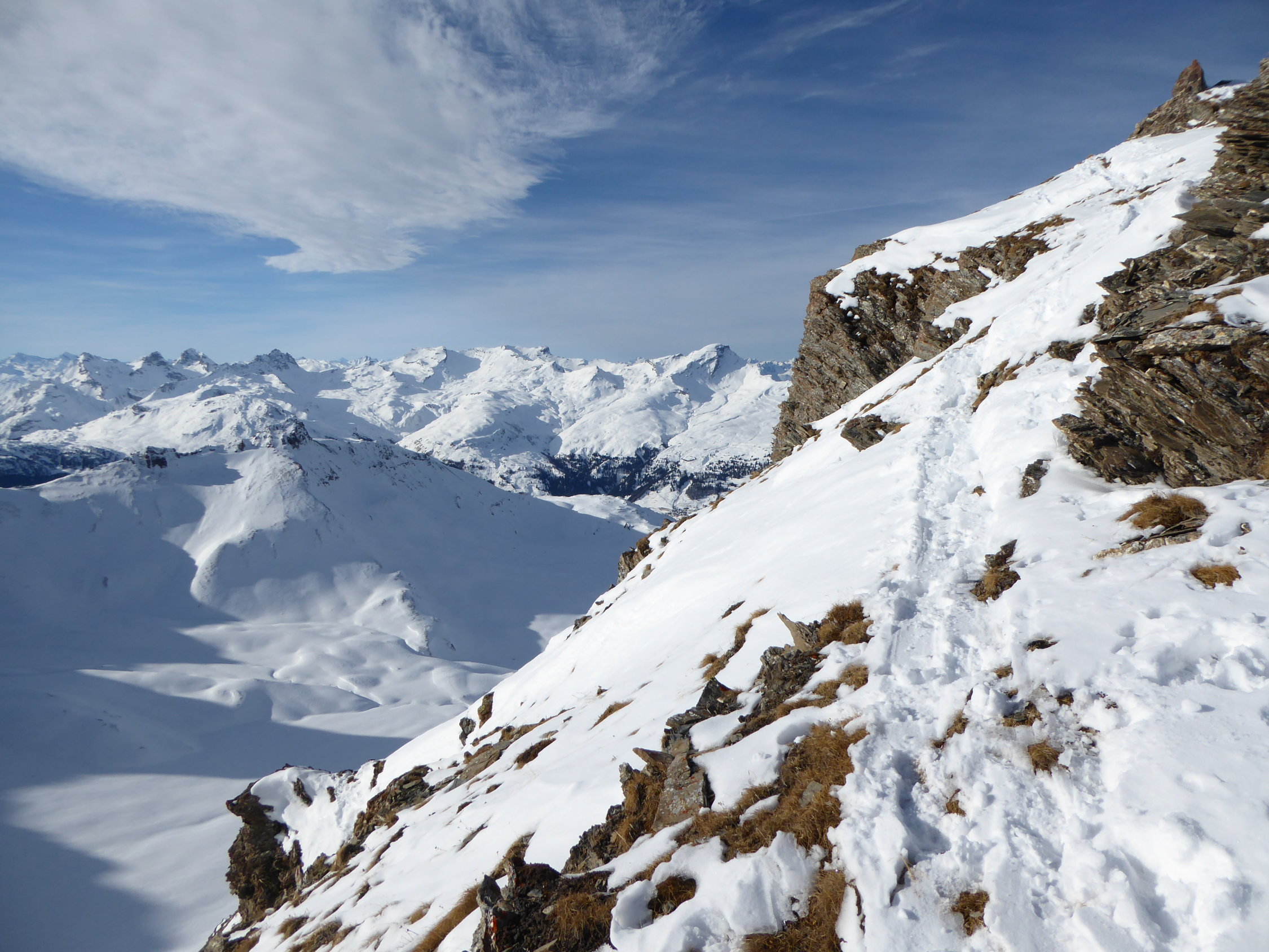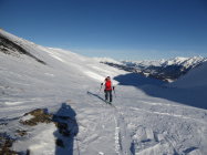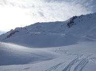Durchwegs Pulverschnee, keine Deckel, sensationelle Verhältnisse, viel Platz neben den bereits vorhandenen Spuren bei der Abfahrt, erst auf den letzten 100 Meter zuunterst hinter Mon etwas wenig Schnee.
