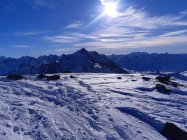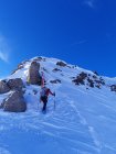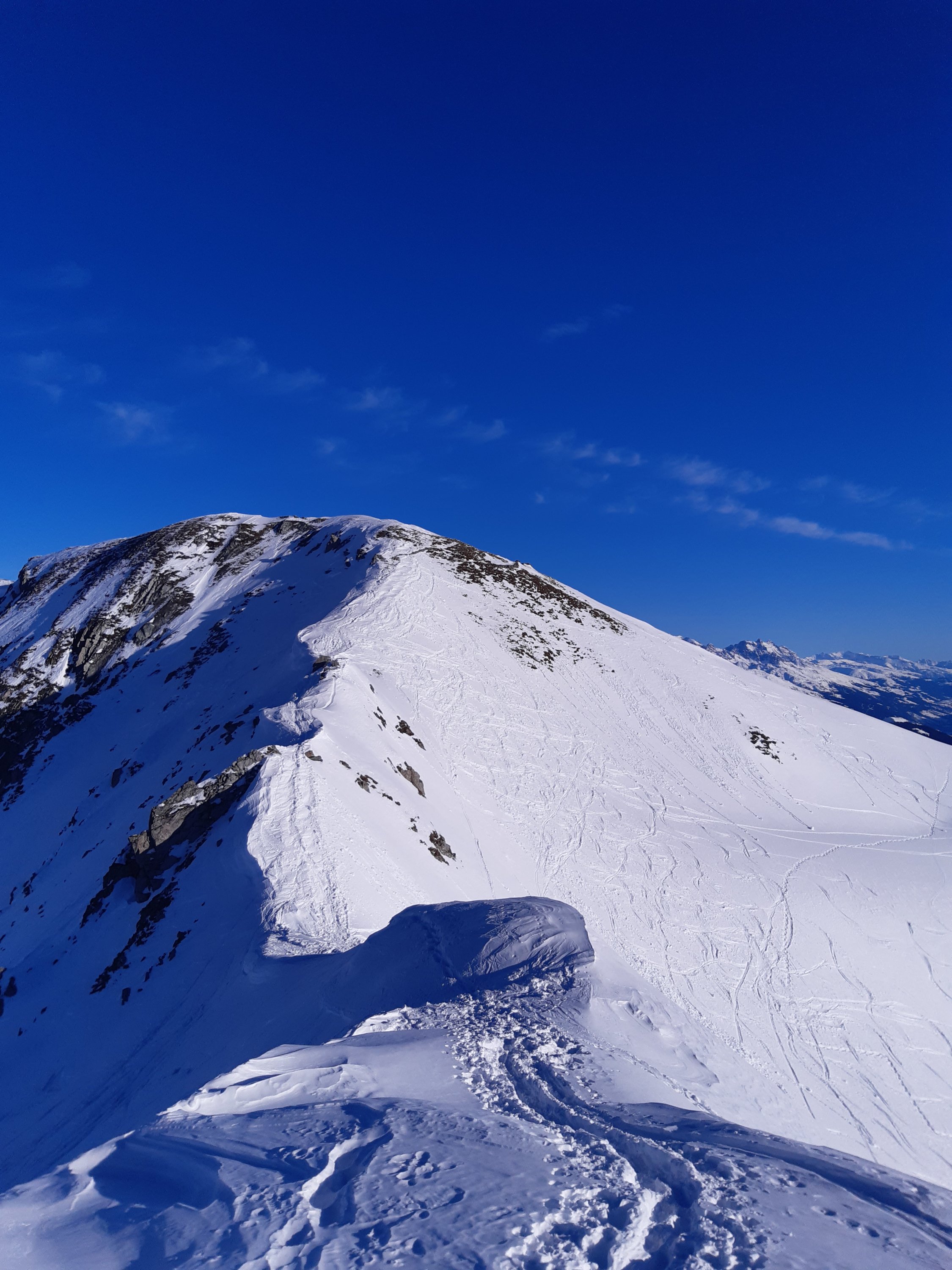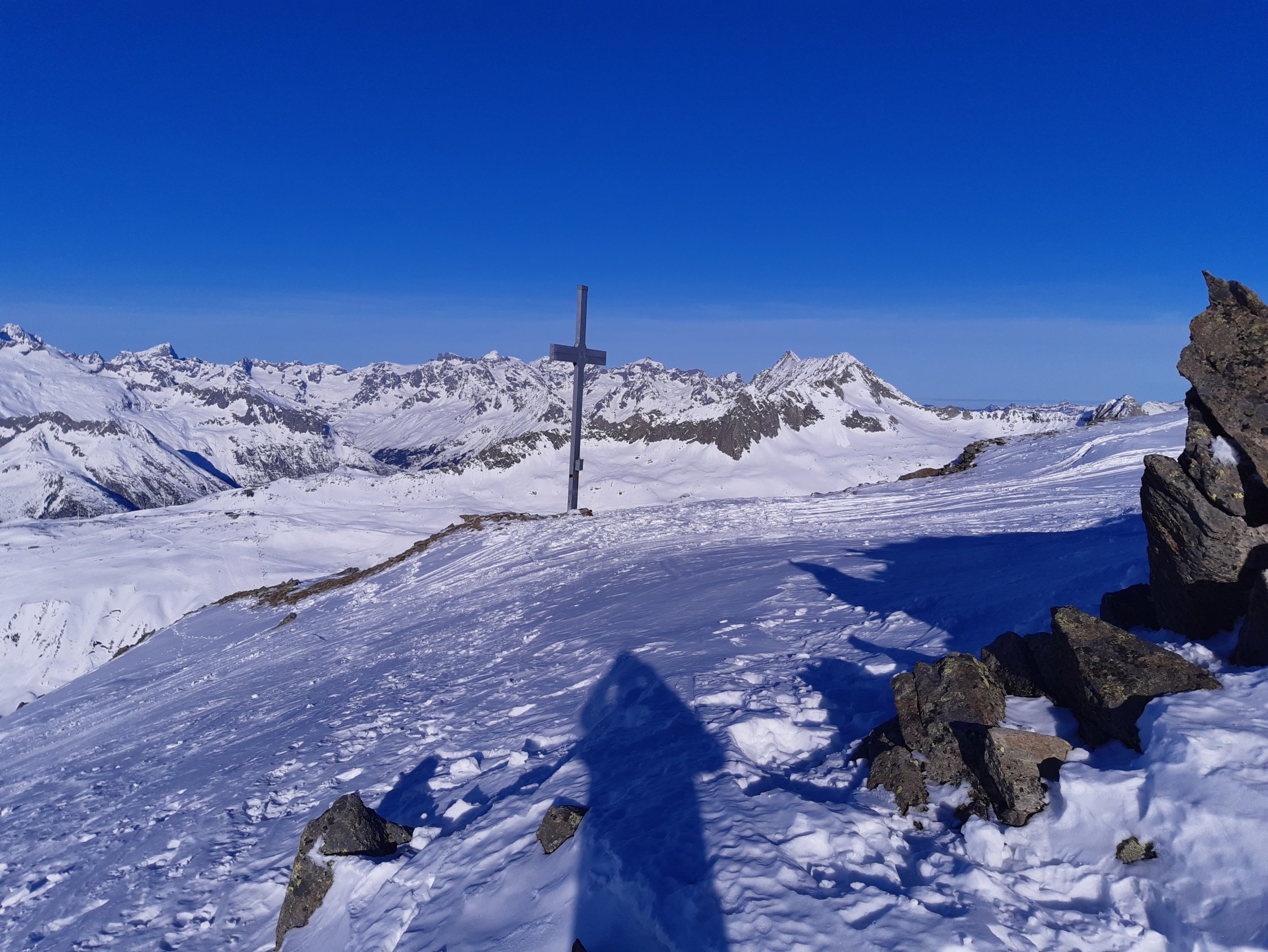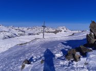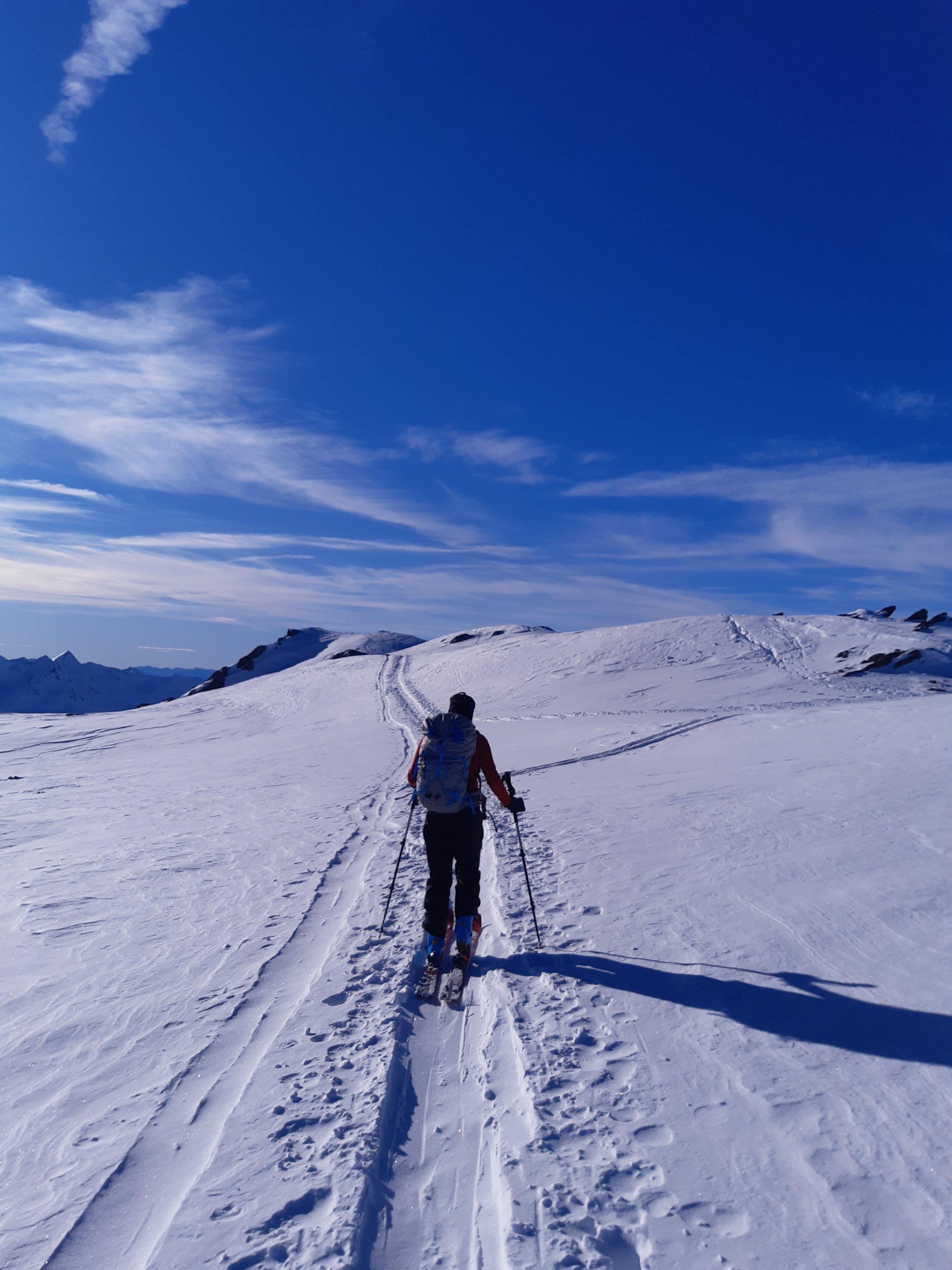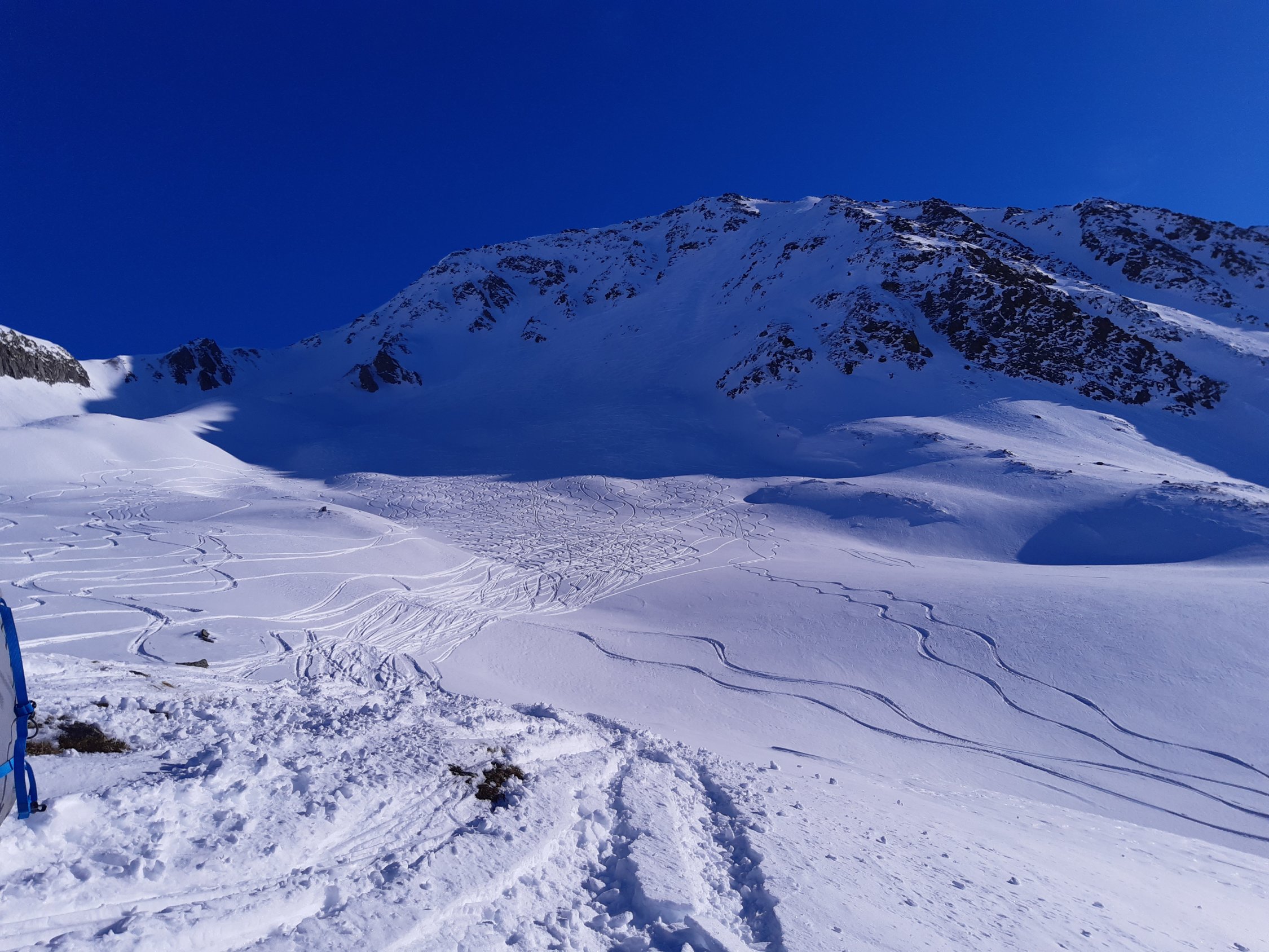 Genug Schnee, aber an den Verbindungsstellen Pazolastock zu Rossbodenstock ist abschnallen angesagt. Frühjahrsverhältnisse.
