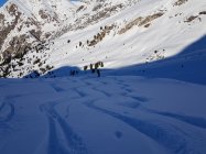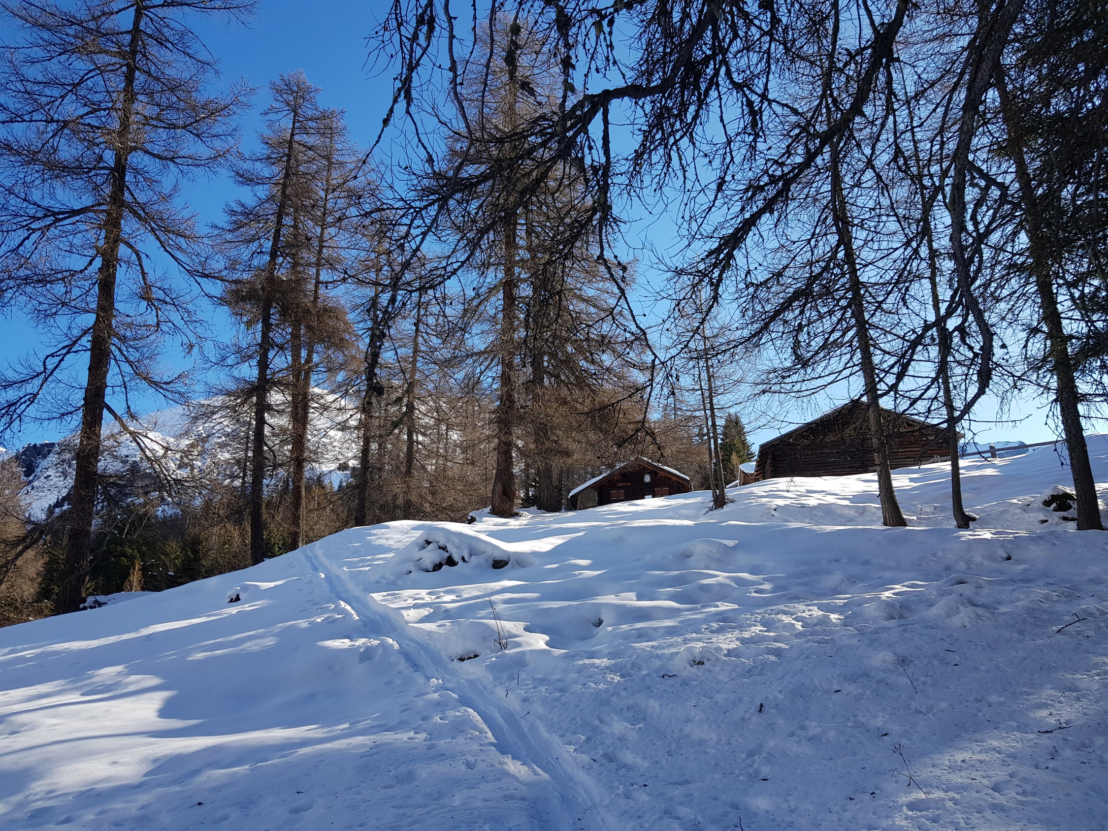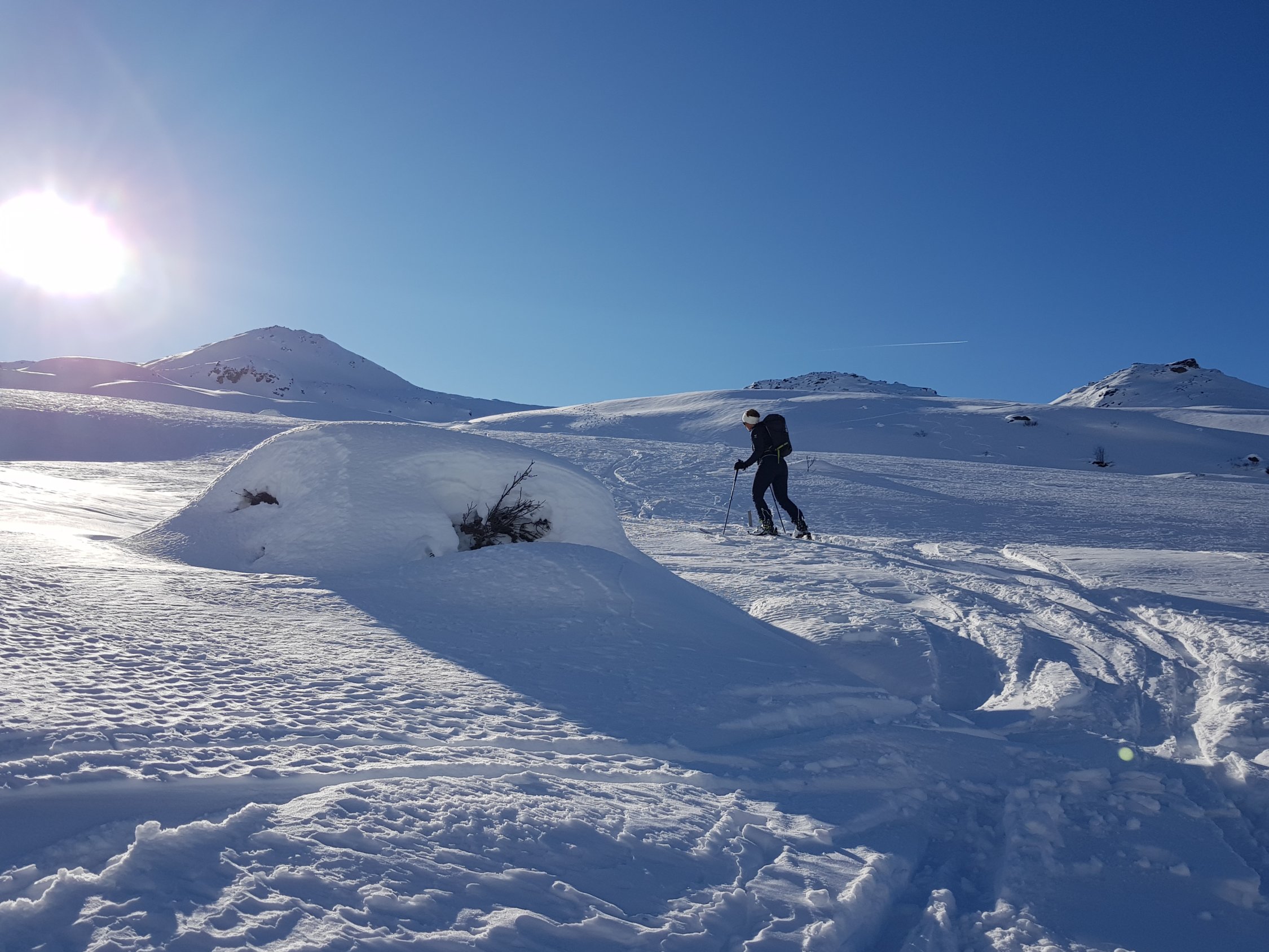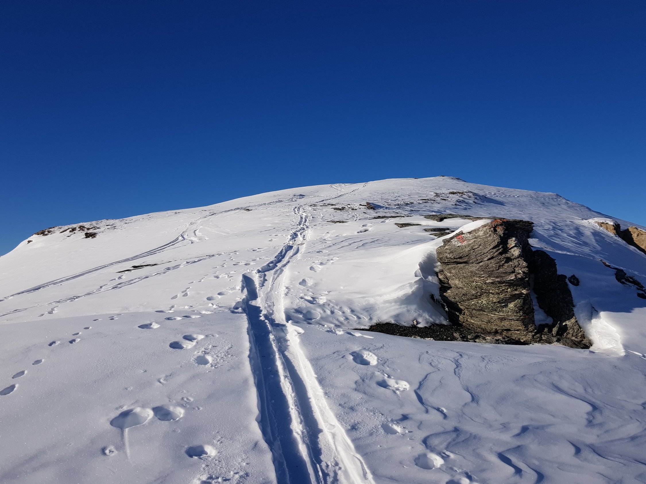 Forststrasse von Tinizong bis Jäger-Parkplatz geräumt, von dort bis Cruschetta geplättete Schneeunterlage, ideal für Aufstieg und Abfahrt. Auf der Fahrstrasse liegt zum Glück ein Baum, so dass keine Autos nach Tgant Pensa fahren können und die Schneedecke nicht kaputt machen. Ab Cruschetta fast nur noch Pulver bis zum Gipfel. Es hat noch viel Platz für eigene Spuren!