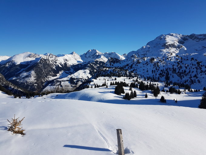 Die Spuren sind mittlerweile im Seebergsee-Gebiet überall gezogen. Trotzdem lohnt sich der Besuch an der Sonne und der Genuss der einfachen Touren.
