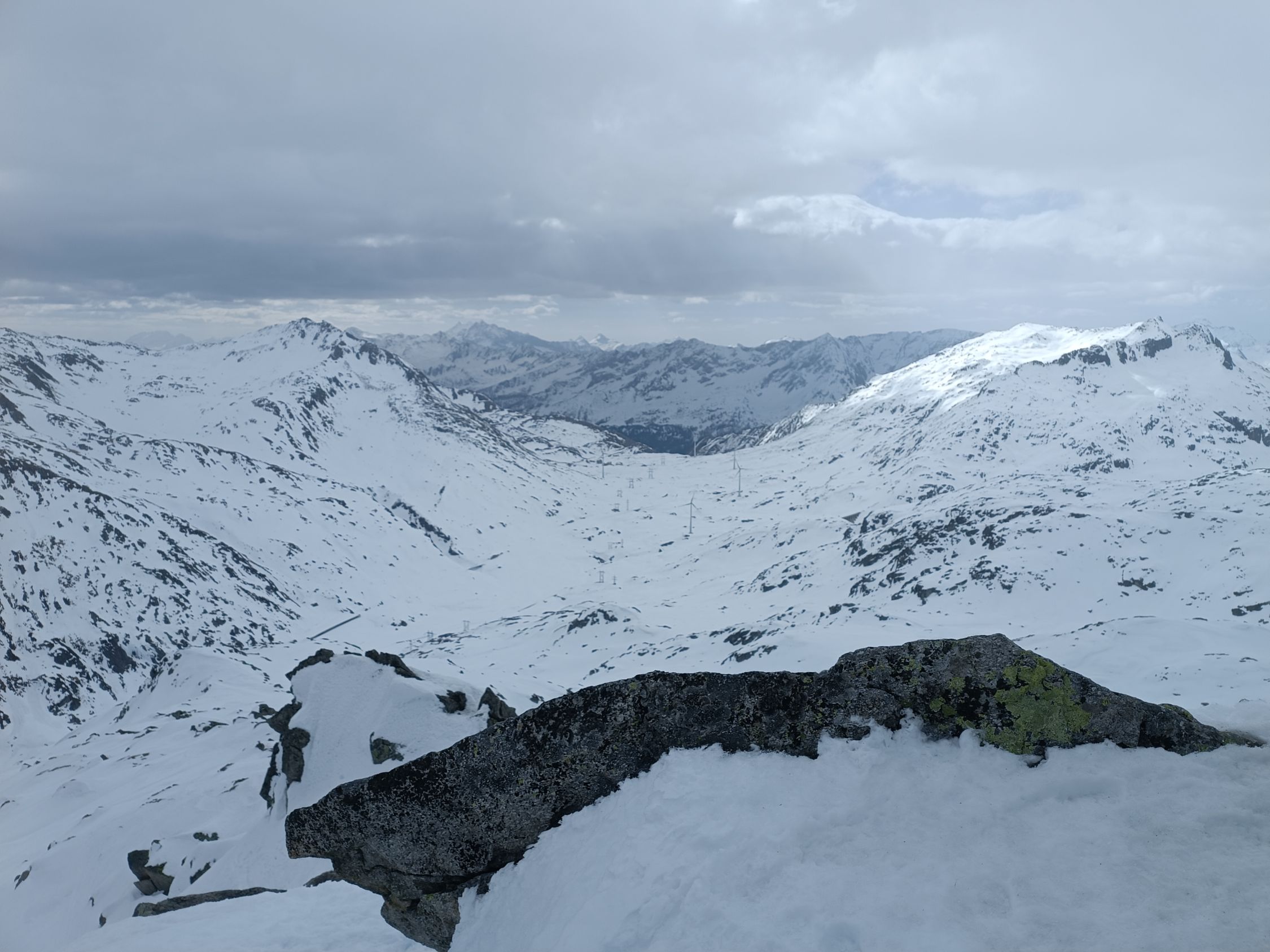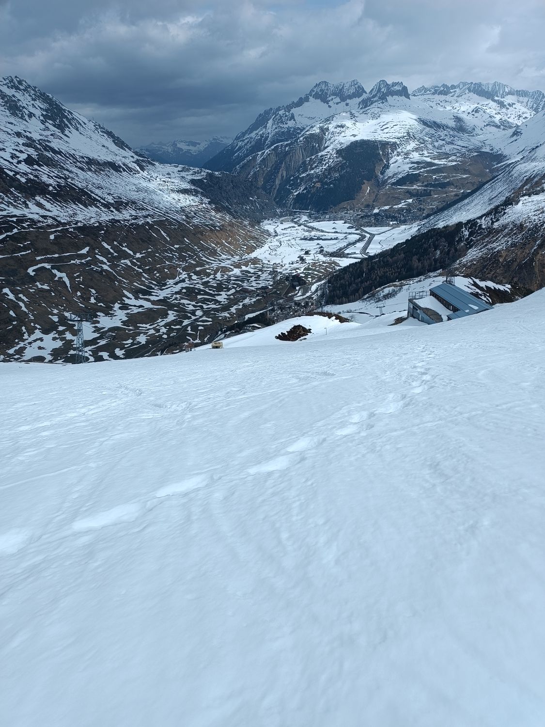 Um 8 Uhr vom Bike losgelaufen.Gut abgestrahlt in der Nacht und gut zum gehen ohne Harscheisen.Vom Skidepot mit Steigeisen zum Gipfel (zum Teil leicht vereist).Um 10.15h abgefahren,bei perfekten Verhältnissen bis zur Passstrasse.Sonst niemand gesehen auf der Route!