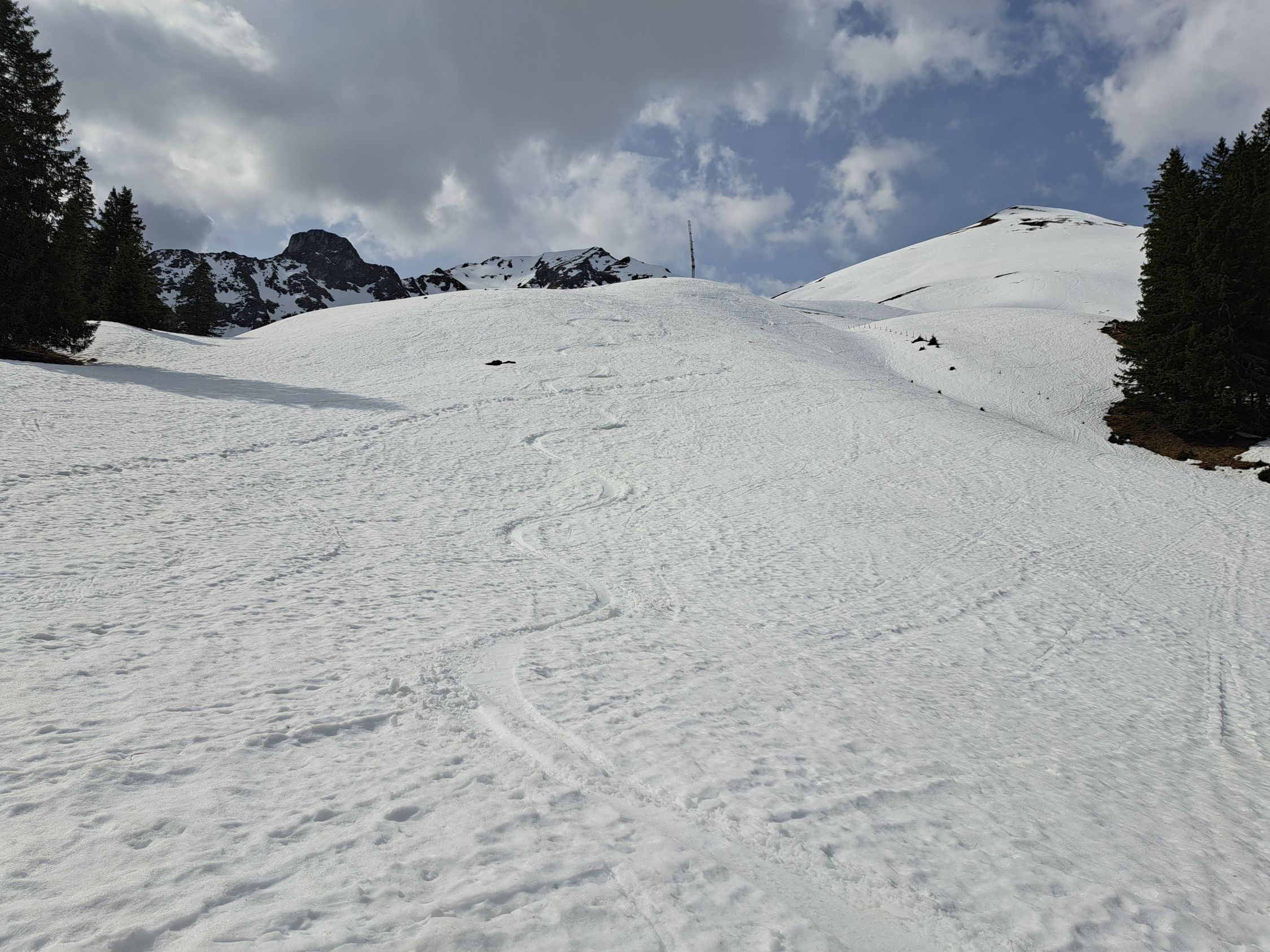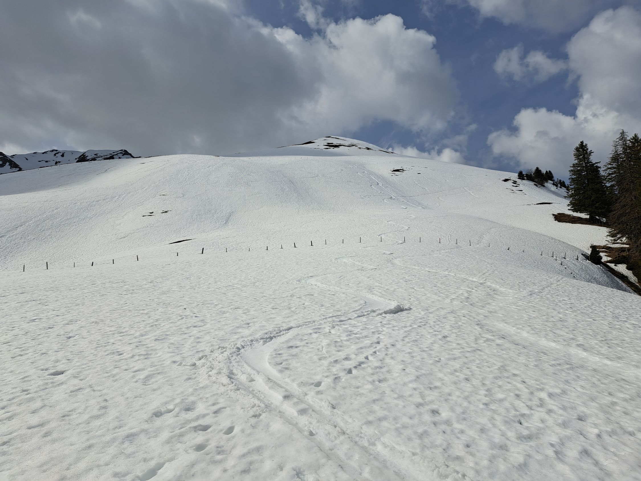 Danach noch Birehubel angehängt und auch da guter nicht tiefer Nassschnee