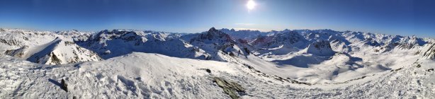 Um 8.00 Uhr losgelaufen und etwa am 10.30 Uhr auf dem Gipfel. Durchgehend ist eine gute Spur vorhanden. IM Bereich vom Gipfelhang traversiert man einmal über den Gipfelhang und nicht über den Grat so wie auf der Karte, da auf dem Grat die Steine zum Vorschein kommen. Im Gipfelhang war der Schnee nicht so gut und im unteren Teil kann man mit ein bisschen suchen noch ein paar schöne Hänge mit Pulver Schnee finden.