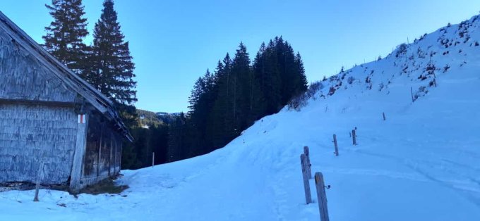 Schnee vom Parkplatz beim Rest. Stäldili genügend, oberhalb ab rund 1400m rasch zunehmend (der Westwind von letzter Woche kam dort nicht hin)