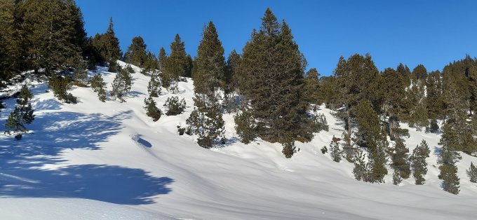 ab oberhalb Seewen dann zum teil noch Pulver vorhanden bis in den Sattel. Gipfelhang hat apere Stellen, kann je nach Routenwahl bis zuoberst mit Ski begangen werden.