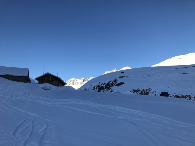 Super Verhältnisse, obwohl die Abfahrt schon etwas zerfahren immer wieder Pulver gefunden.