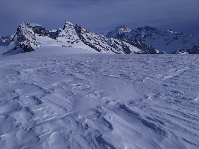 Die Gletscherspitza auf der anderen Talseite haben viel besseren Schnee ( siehe Eintrag vor 2 Tagen)