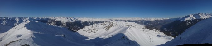 Dem Grat Spi da Minschuns folgend bis zum Gipfel. Zum teil muss abgeblasenen Stellen ausgewichen werden, jedoch alles problemlos.