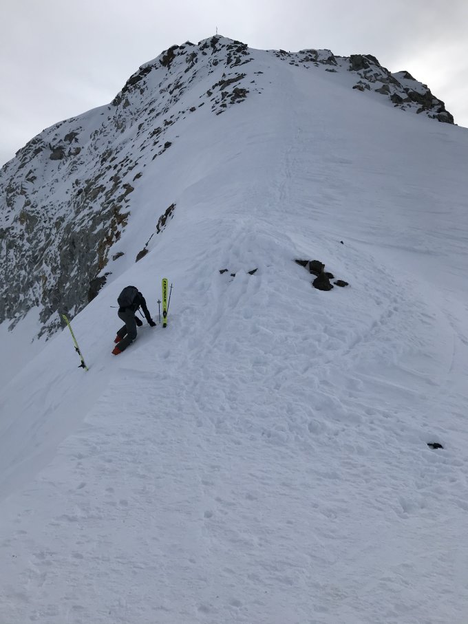 Starker Wind tlw stürmisch, sonst Aufstieg gut, zum Gipfel heute keine Eisen/Pickel benötigt. Rottälihorn noch mitgenommen.