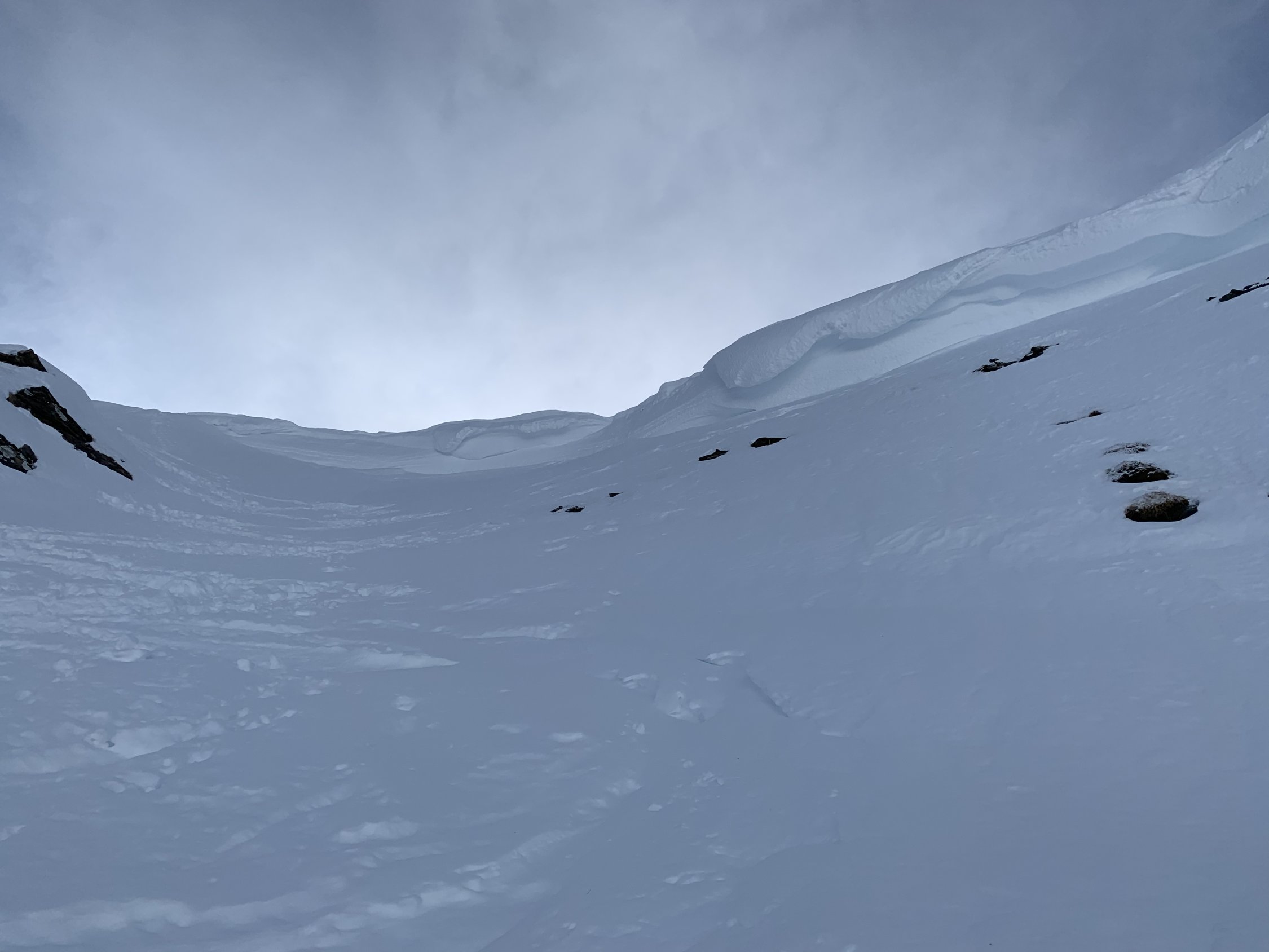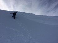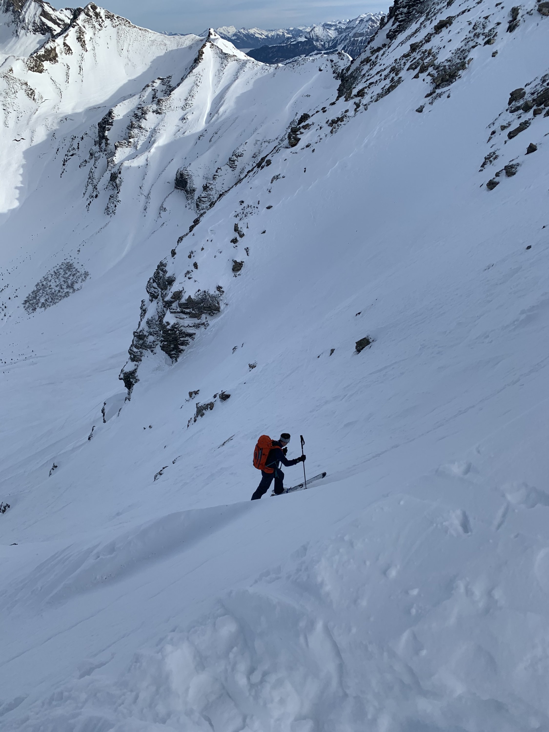 Der steile Aufstieg durch den Hang zwischen Türmli- und Landvogtehore hat eine anspruchsvolle Spur in der linken Hangseite (von unten gesehen). Der Schnee ist sehr locker auf harter Unterlage, man rutscht viel und entsprechend mühsam und anstrengend gestaltet sich der Aufstieg. Ab Übergang ins Rügge Tälti bis Gipfel problemlos.