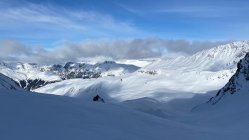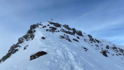 Waren alleine unterwegs. Ganze Route Bruchharsch bzw. Hartschnee. Spur vorhanden, teilweise verweht. Gipfelhang guter Trittschnee, haben keine Steigeisen benötigt. Kalter eisiger Wind, vereinzelt Sonne. Eine Gruppe mit Bergführer war auf dem Weg Richtung Piz Vadret.