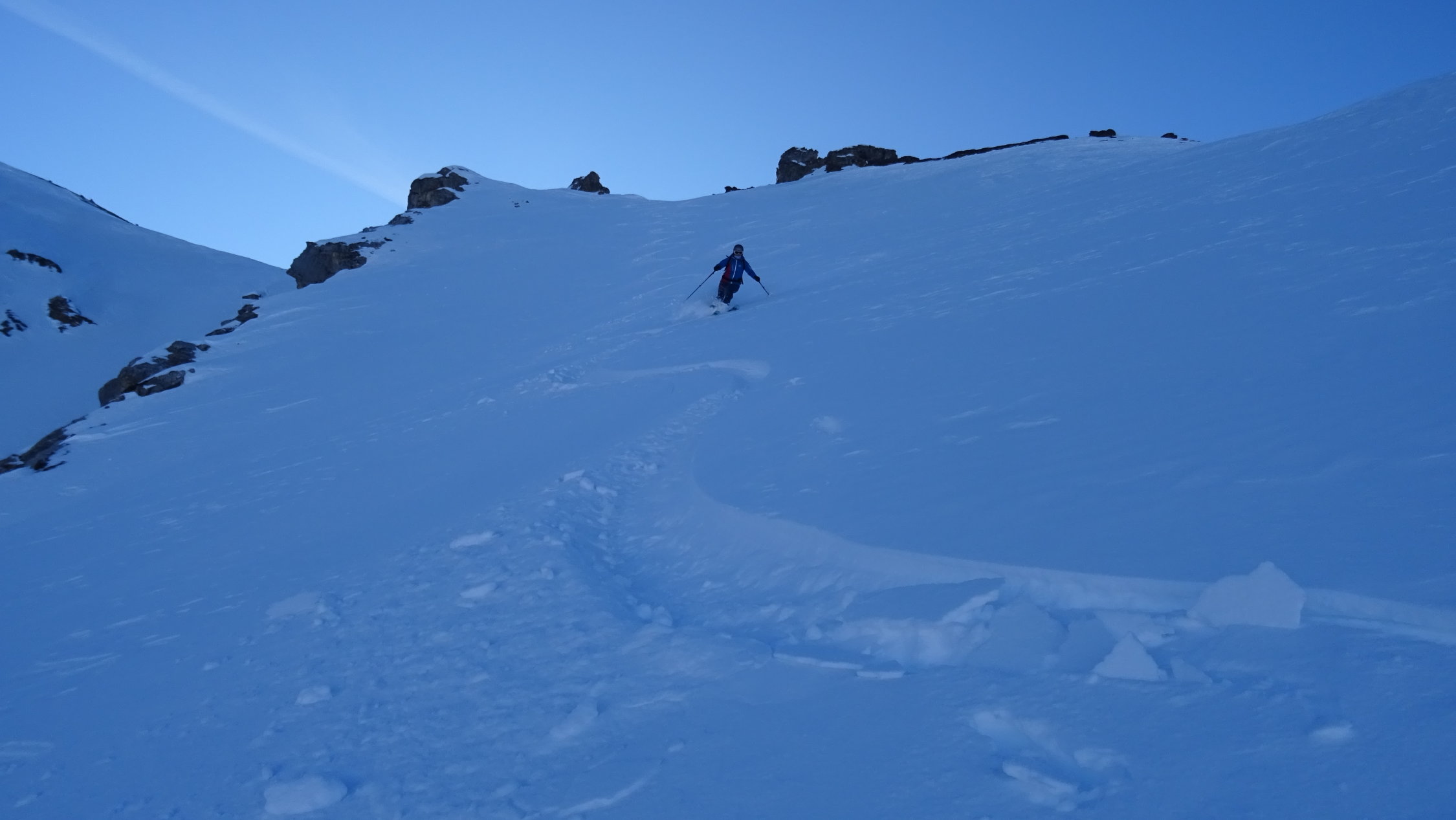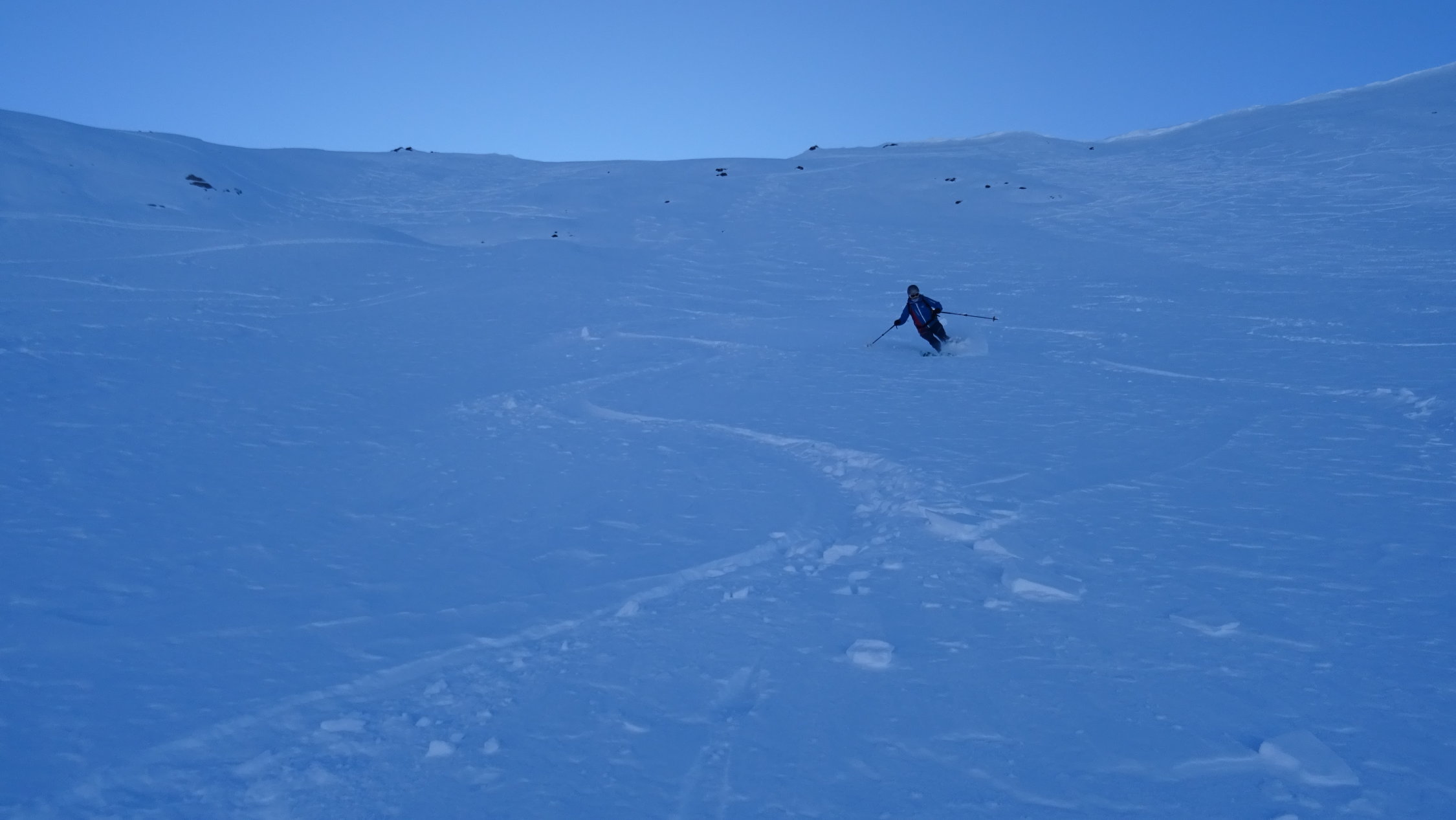 Oberhalb 1800m hat es immer noch 20-30cm Pulverschnee wenn du die richtige Hangrichtung und wenig windbearbeitete Hänge wählst
