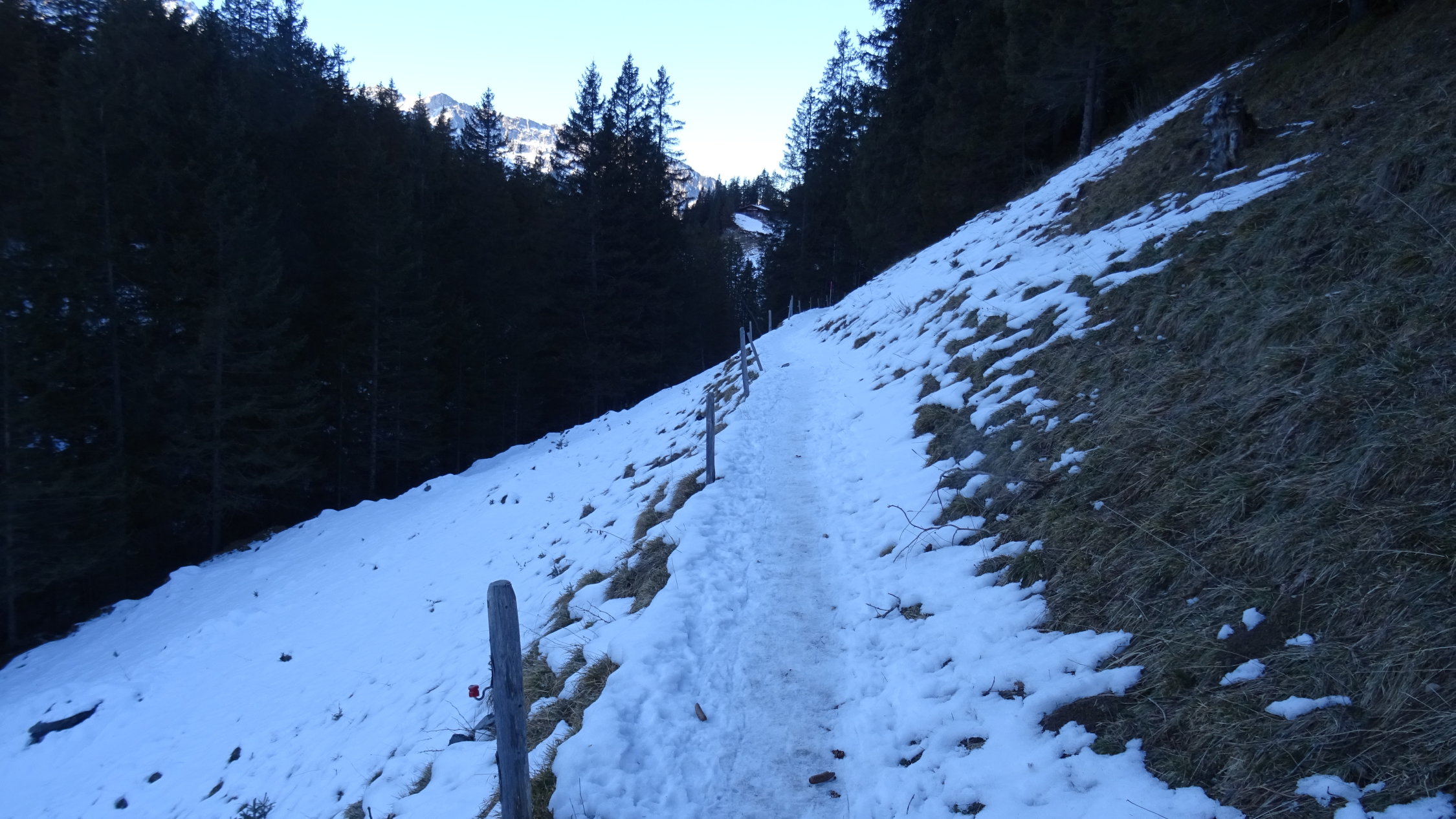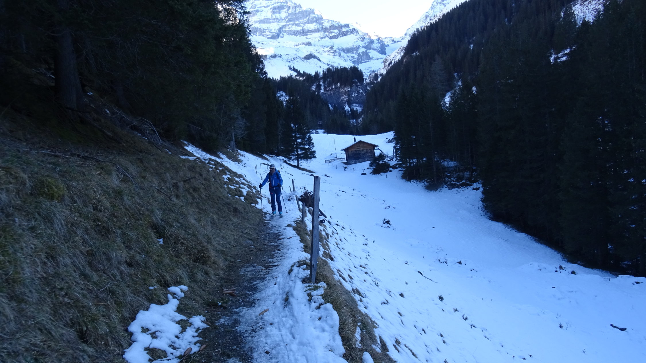 Ab Griesalp überall genügend Schnee auf der Strasse bis Untere Bundalp 1700m