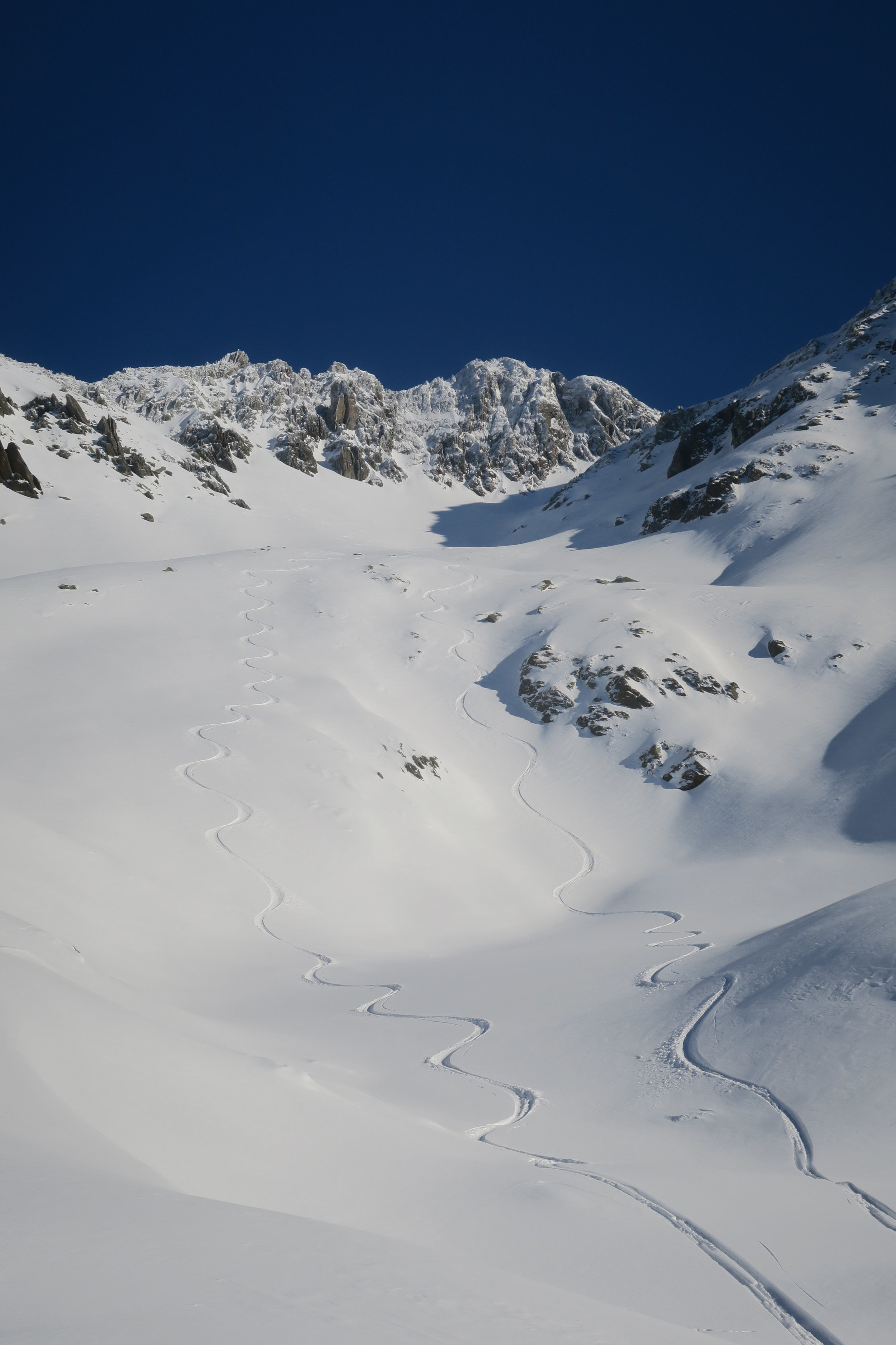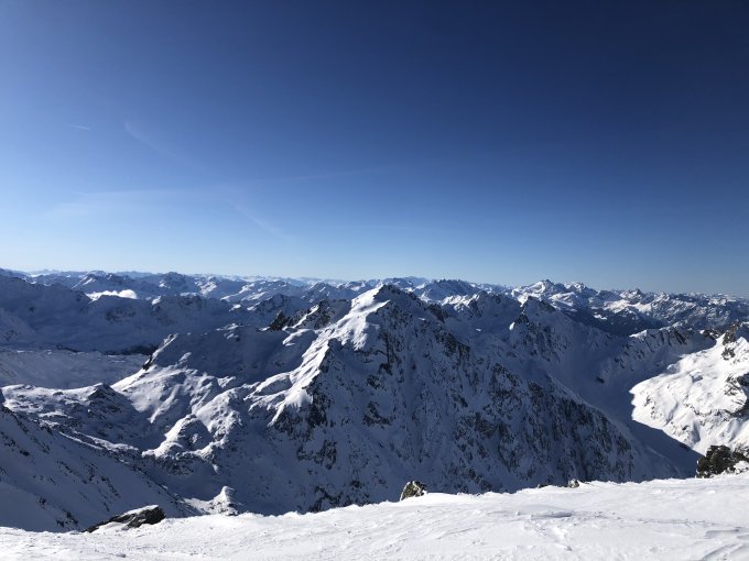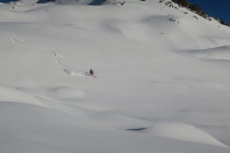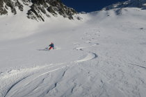 Kaltenberg Gipfel Hang windgepresst teils pulvrig wenn man ganz am Rand fuhr. Bettlerkar oben windgepresst dann Pulver