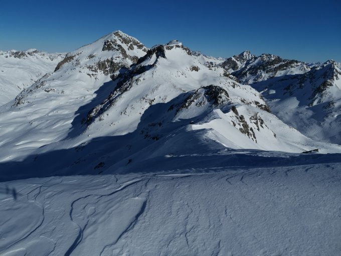 Der Wind war leider etwas heftiger als prognostiziert. Deshalb das eigendliche Ziel Piz Bever heute nicht gegangen, sah aber auch nicht so gut aus.