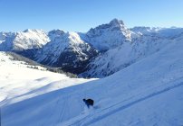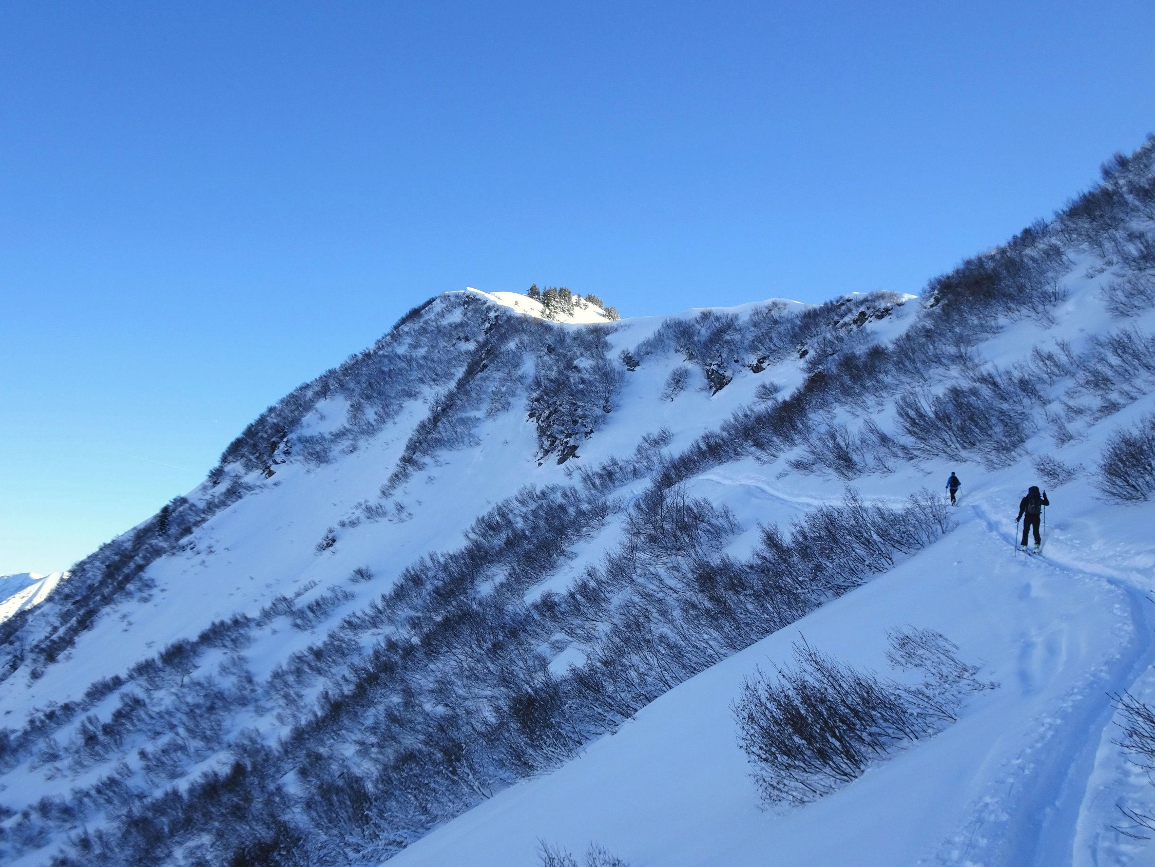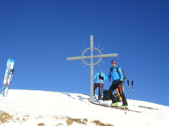 Schneelage ab Auenhütte recht gut, alle Abfahrten ohne Stein- oder Bodenkontakt. Weniger Neuschnee als erwartet, oben vielleicht 10 cm. Wir waren zuerst auf dem Steinmandl, hier noch weitgehend unverspurt, jedoch sehr kompakter Schnee auf der ostseitigen Abfahrt.