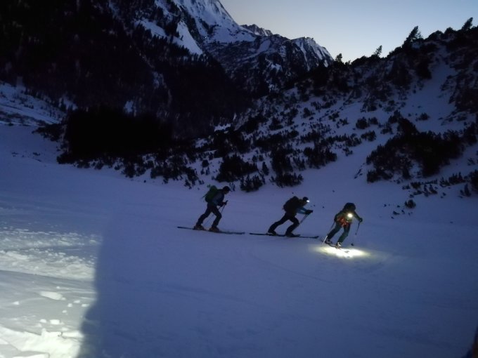 Gute Aufstiegsspur, Pulver bei der Abfahrt, noch unverspurte Abfahrt gefunden