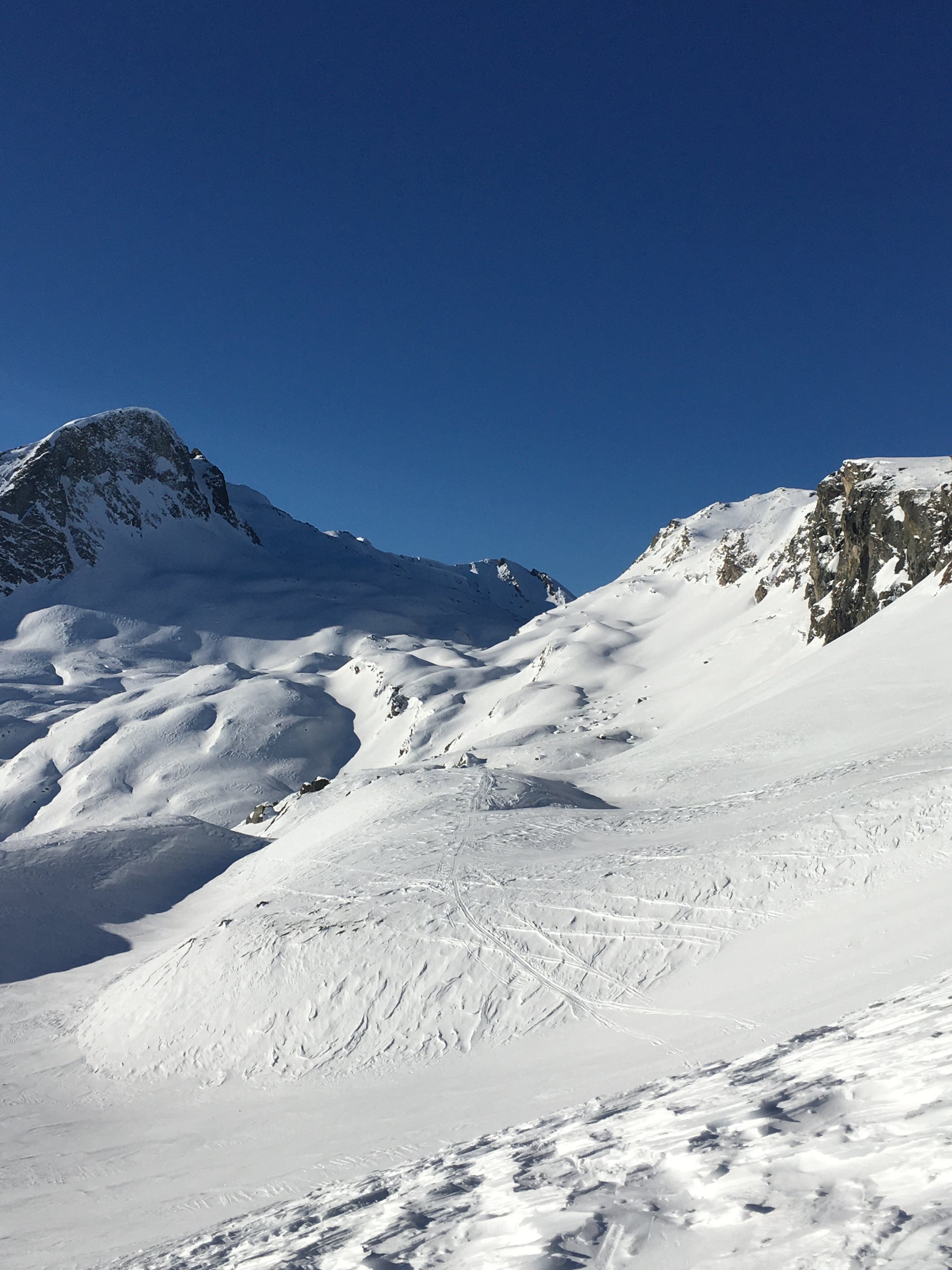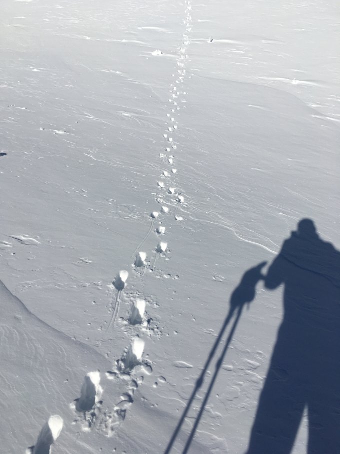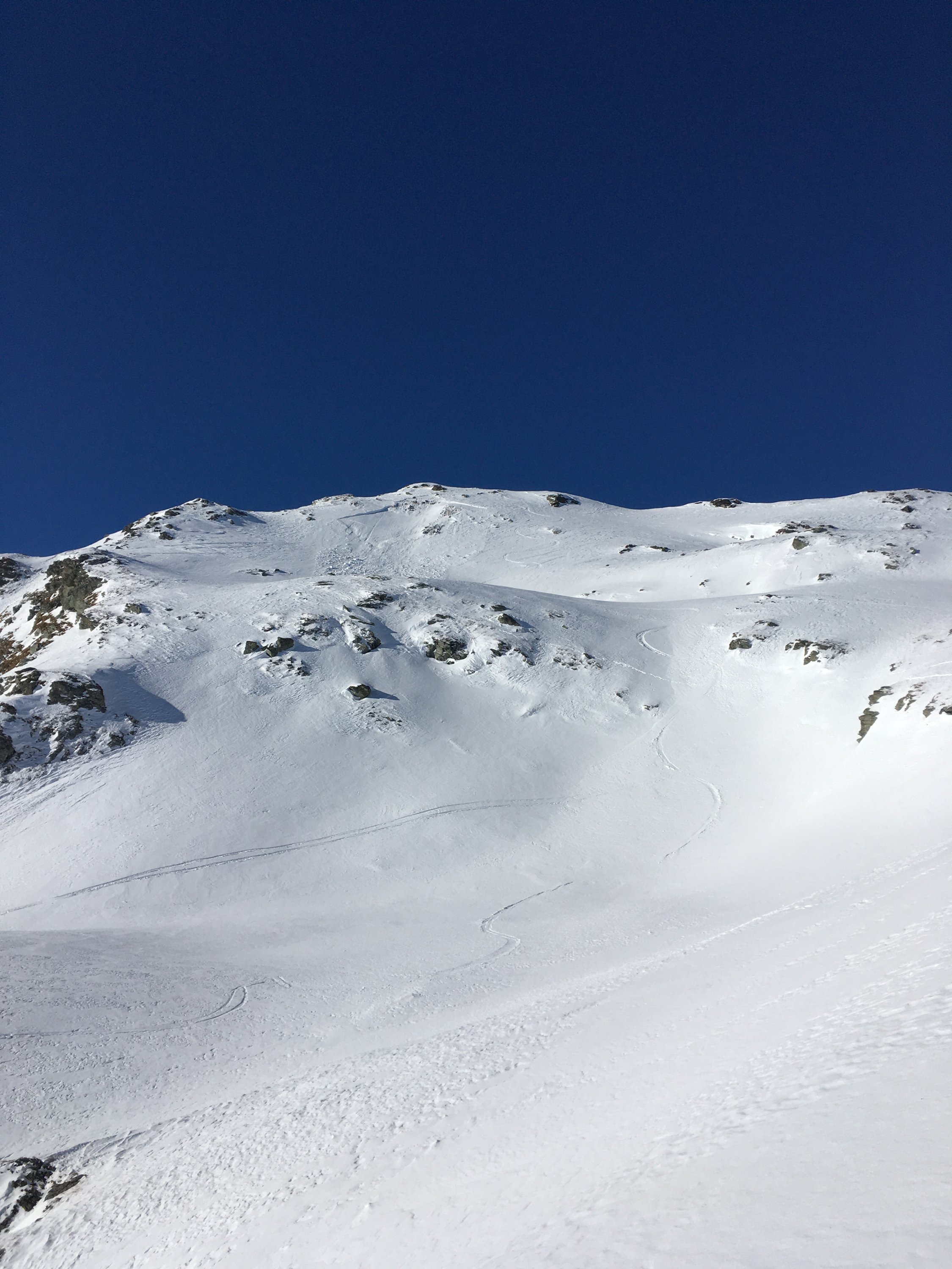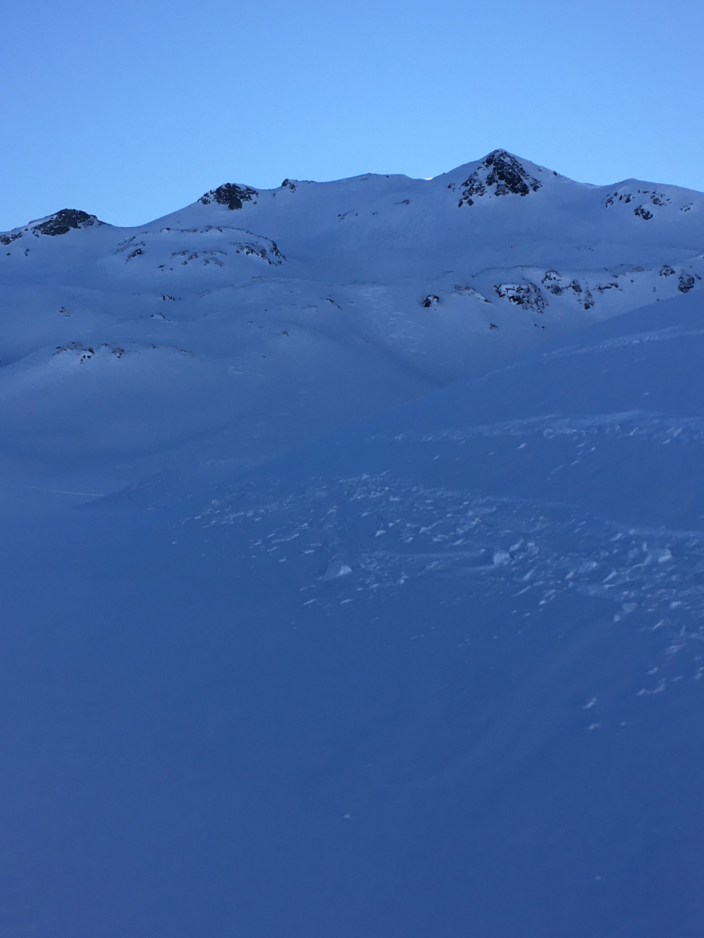 Start 9 Uhr Skilift Bivio (Talstation), minus 5 Grad, windstill. Mit Bügellift bis Mot Scalotta 2562 m. Nun anfellen und nach kurzem Aufstieg etwas abfahren und weiter traversieren in der Flanke Sur al Cant. Oberhalb Leg Curegia steiler hinauf Richtung Osthang Columban. Nun am besten nach rechts ausholen und dann westwärts unterhalb Gipfelgrat und dann sanft zum Gipfel. Ich bin links rum den steilen Osthang unterhalb einem grossen Schneebrett und dann den Südostgrat hinauf, nicht optimal. Abfahrt den steilen Nordhang runter zum Leg Columban. Die ersten 100 Höhenmeter Bruchharst, weiter unten immer besser und vielfach schöner Pulver mit guter Unterlage. Im interessanten Valletta da Beiva vielfach Pulver, auch einige Passagen mit Hartschnee, aber meist schön zu fahren. Man sollte meistens auf der rechten Seite des Tales bleiben, einige unübersichtliche enge und steile Passagen. Im Nordhang Schatten, weiter unten teilweise Sonne. Am Schluss über Skipiste direkt zum guten Kaffee Roccabella mit hausgemachten Kuchen.