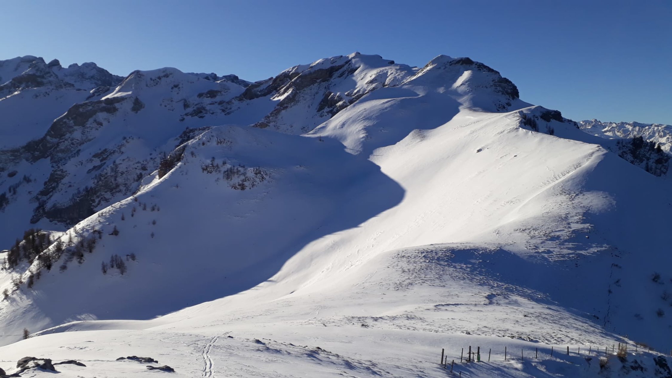 Bis Gapfahl gute Spur. Von dort dann gespurt bis zum Kolm/Kolme und auf den Goldlochspitz. Kolm war sehr gut zu spuren. Goldlochspitz oben hin sehr harschig unter dem lockeren Triebschnee. Dort mit Harscheisen aber gut machbar. Die letzten Meter zu Fuss auf den Gipfel.