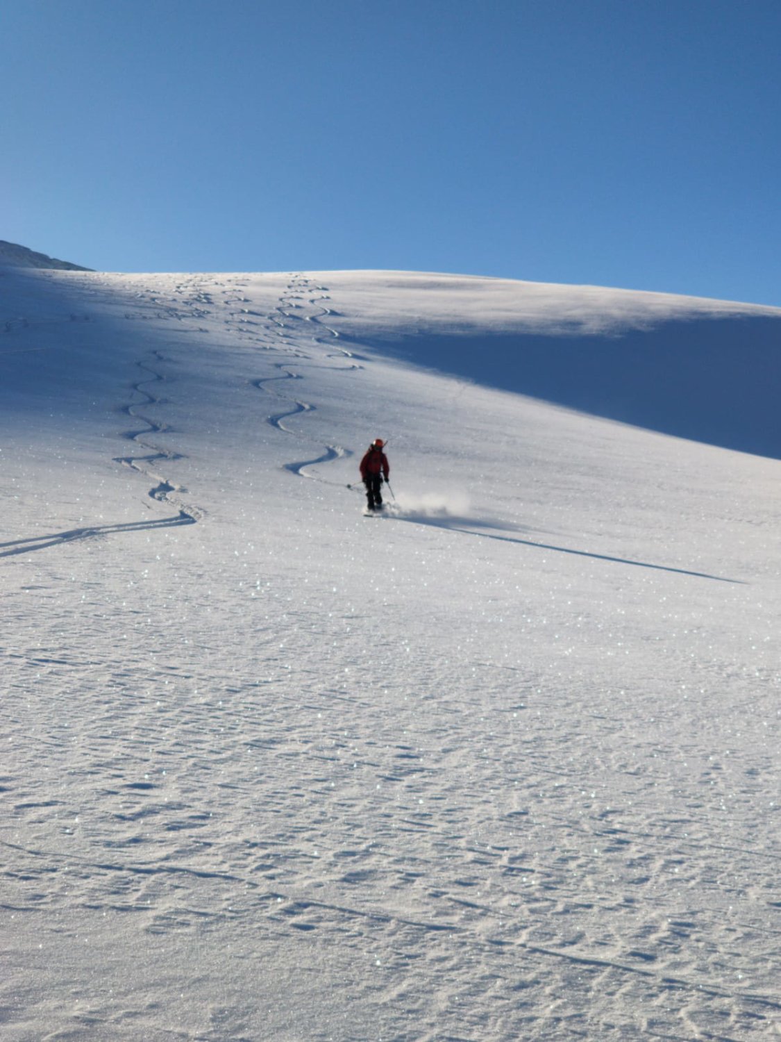 Ab Skidepot Steigeisen nicht unbedingt notwendig, erleichtern aber den Abstieg.