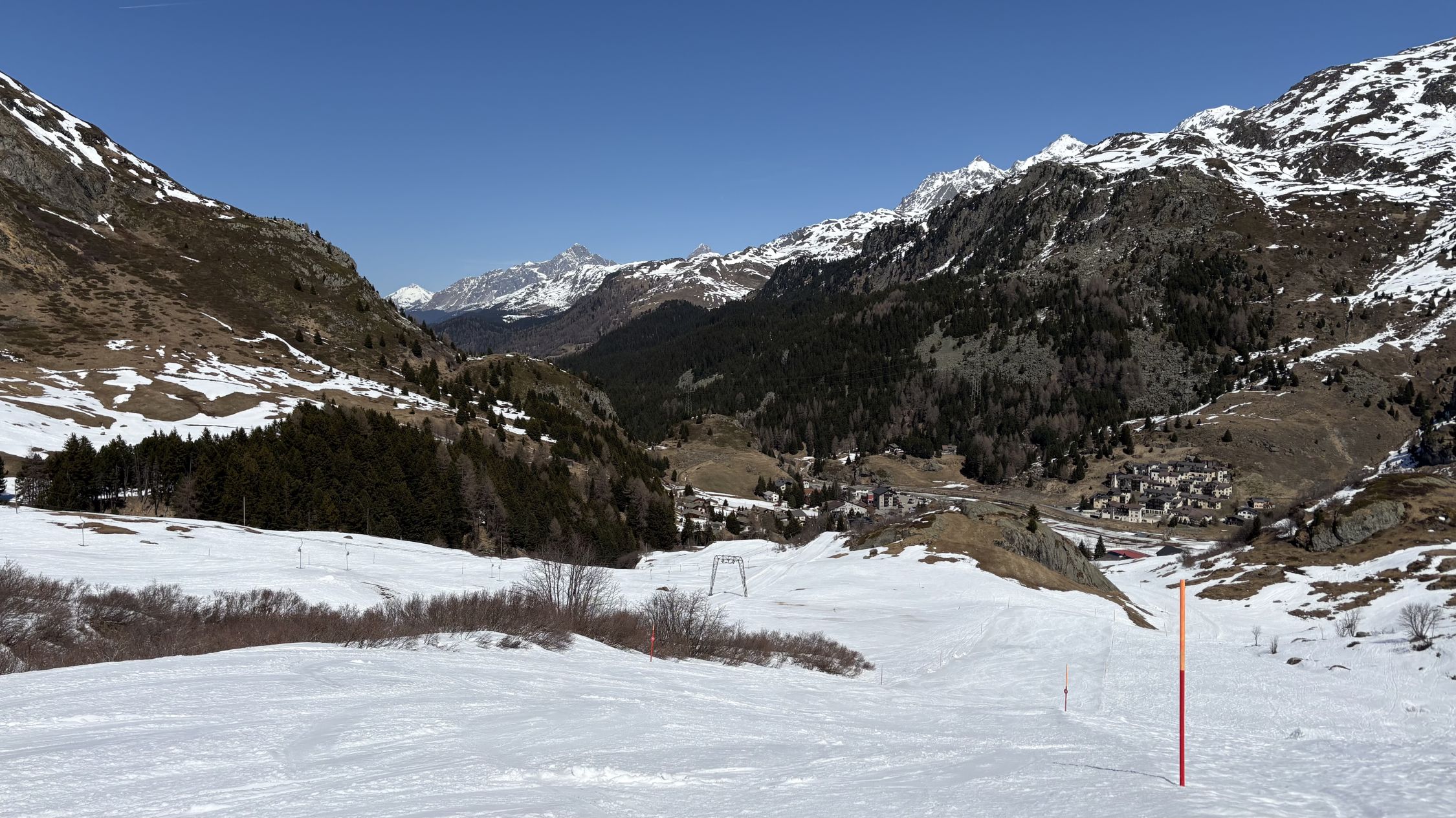 Die Nacht war nicht ganz klar. Deshalb wäre ein sehr früher Start oder eine Skipiste notwendig. Weil das Postauto erst um 9 Uhr ankommt, war die Abfahrtsroute klar: im Skigebiet.