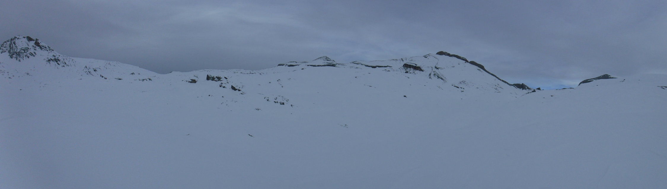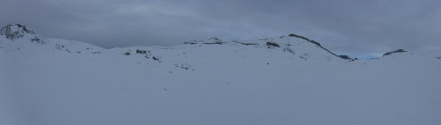 Tourenbeginn bei der Faneshütte um 08:20 Uhr bei 1°C bei bedecktem Himmel mit Südwest-Föhn.