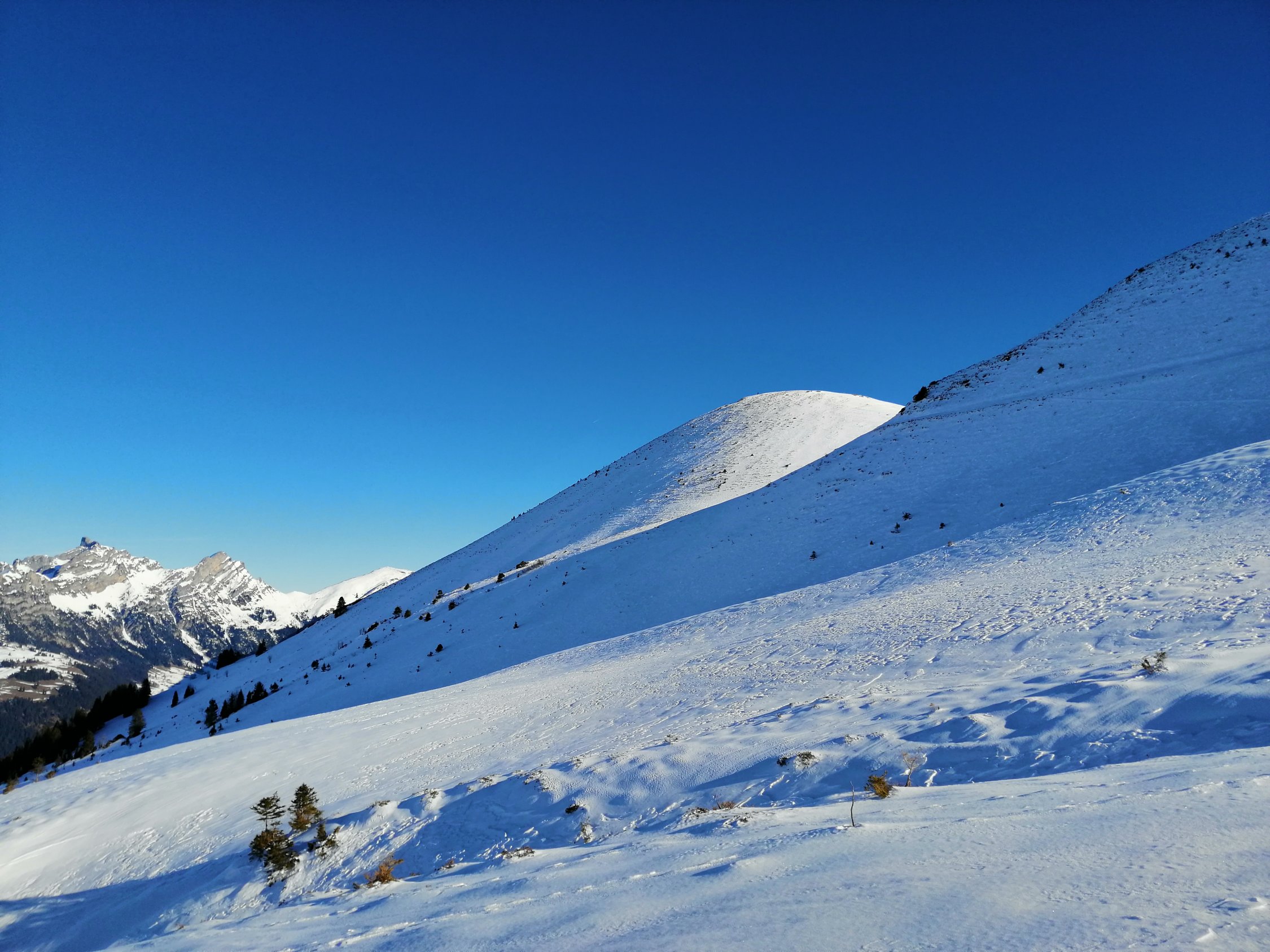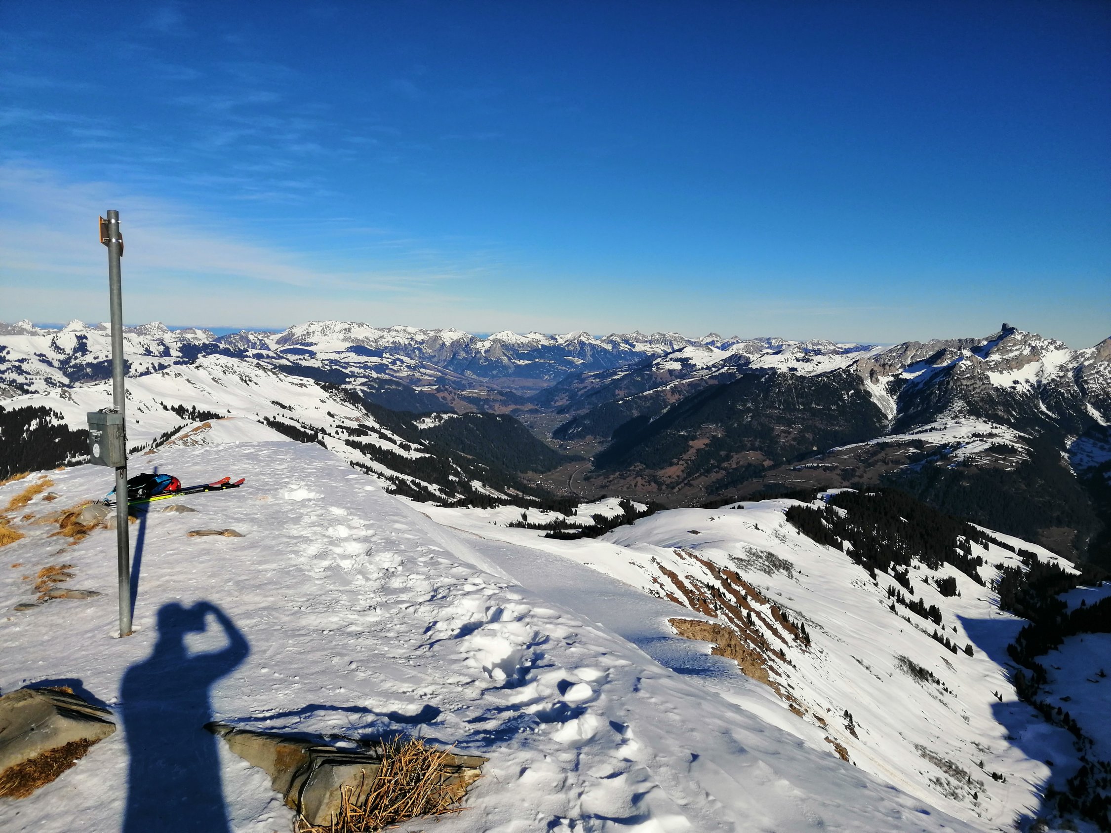Start ab Schönried über Parwenge und Amslergrat. Die Schneedecke ist stark vom Wind gezeichnet: abgeblasen, Hartschnee oder Presspulver aber auch für ein paar Schwünge im Pulver hat es noch gereicht. Anschliessend aufs Flöschhore und wieder Retour.
