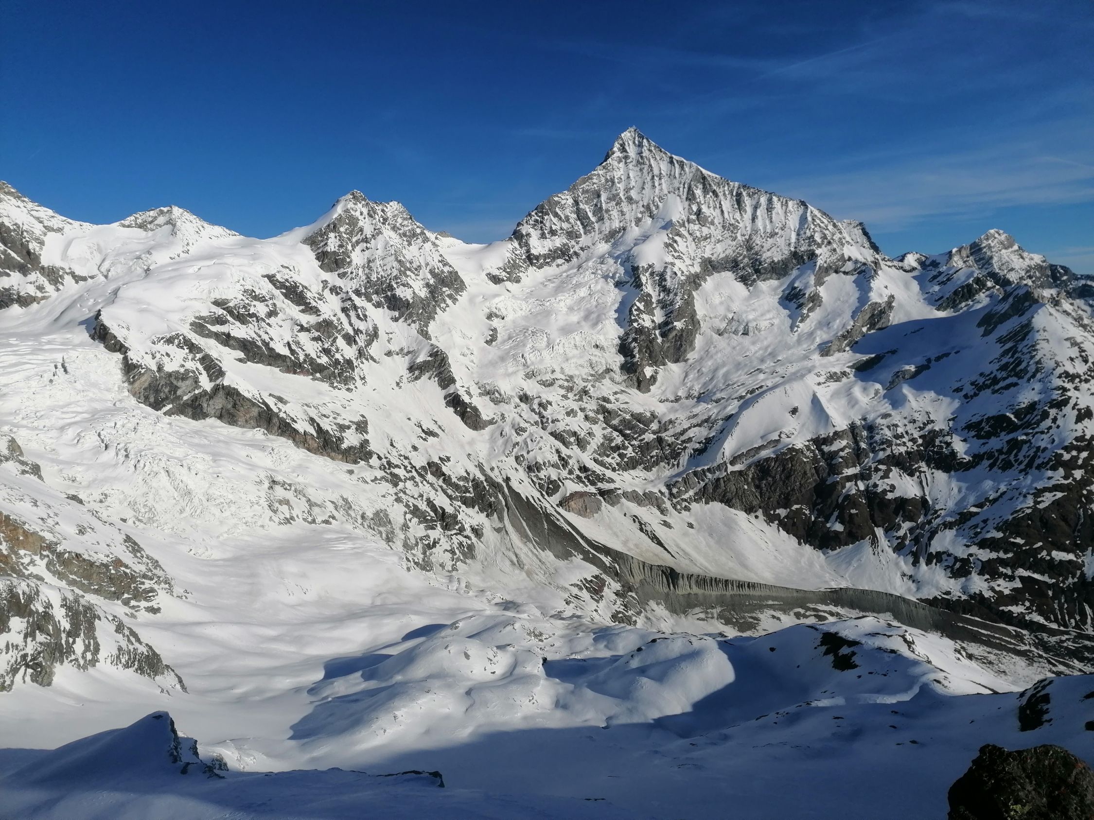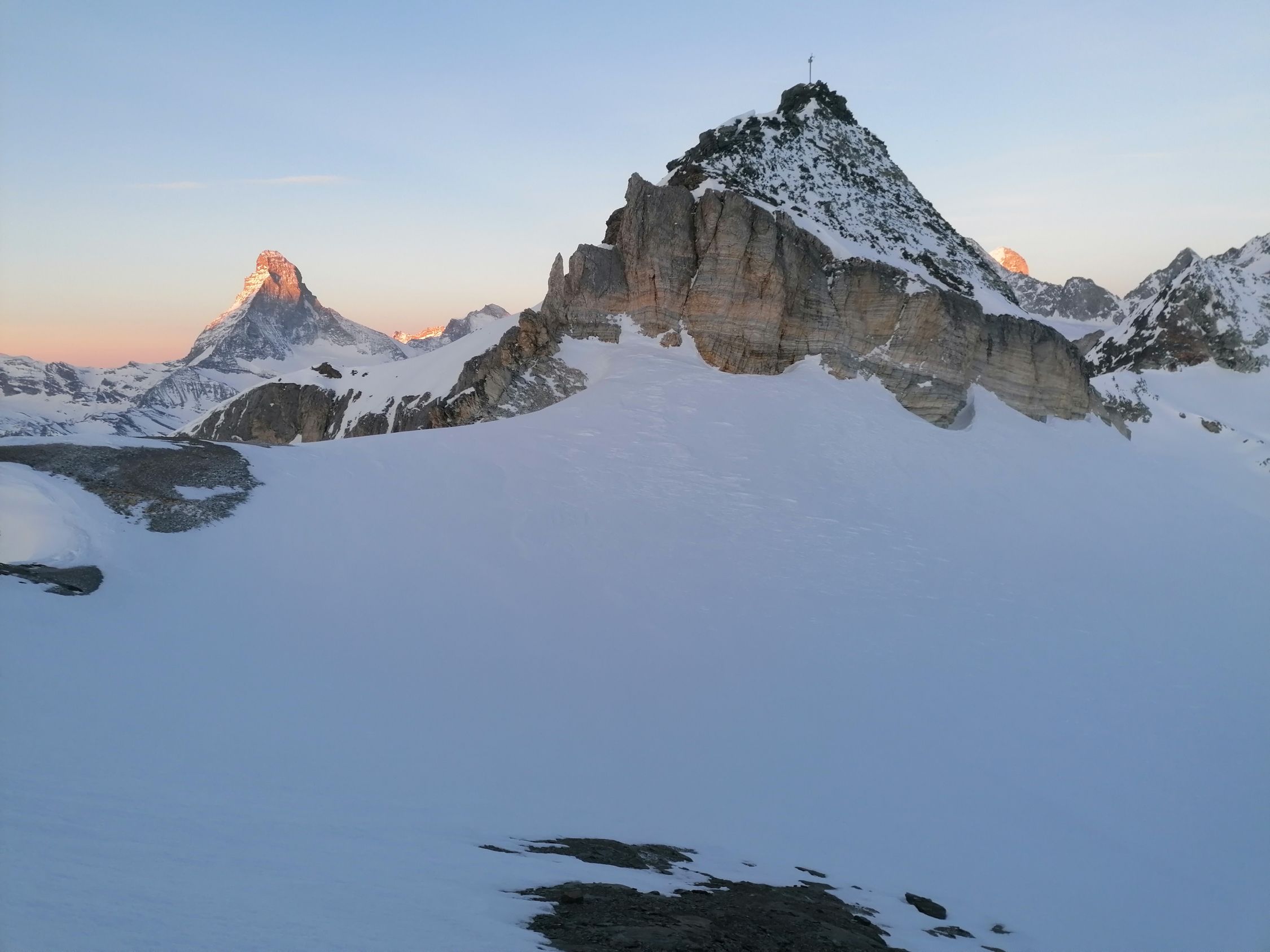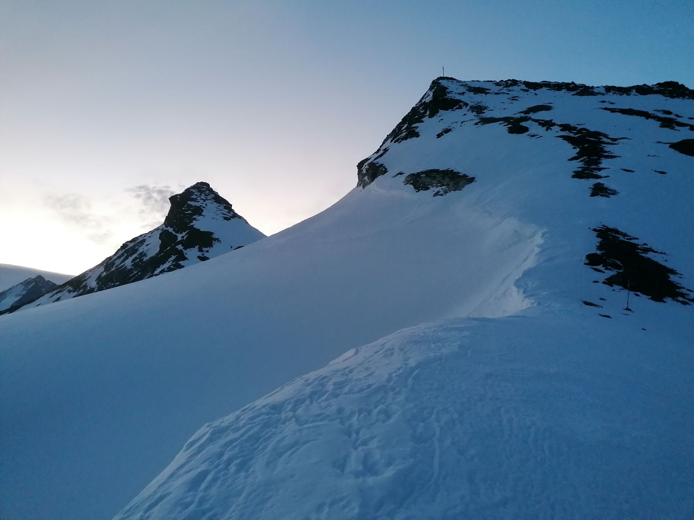 Start in Zermatt um 0.15 Uhr. Ab Trift war der Schnee ausgezeichnet gefroren. Nach Besteigung vom Mettelhorn besuchten wir noch das Platthorn.