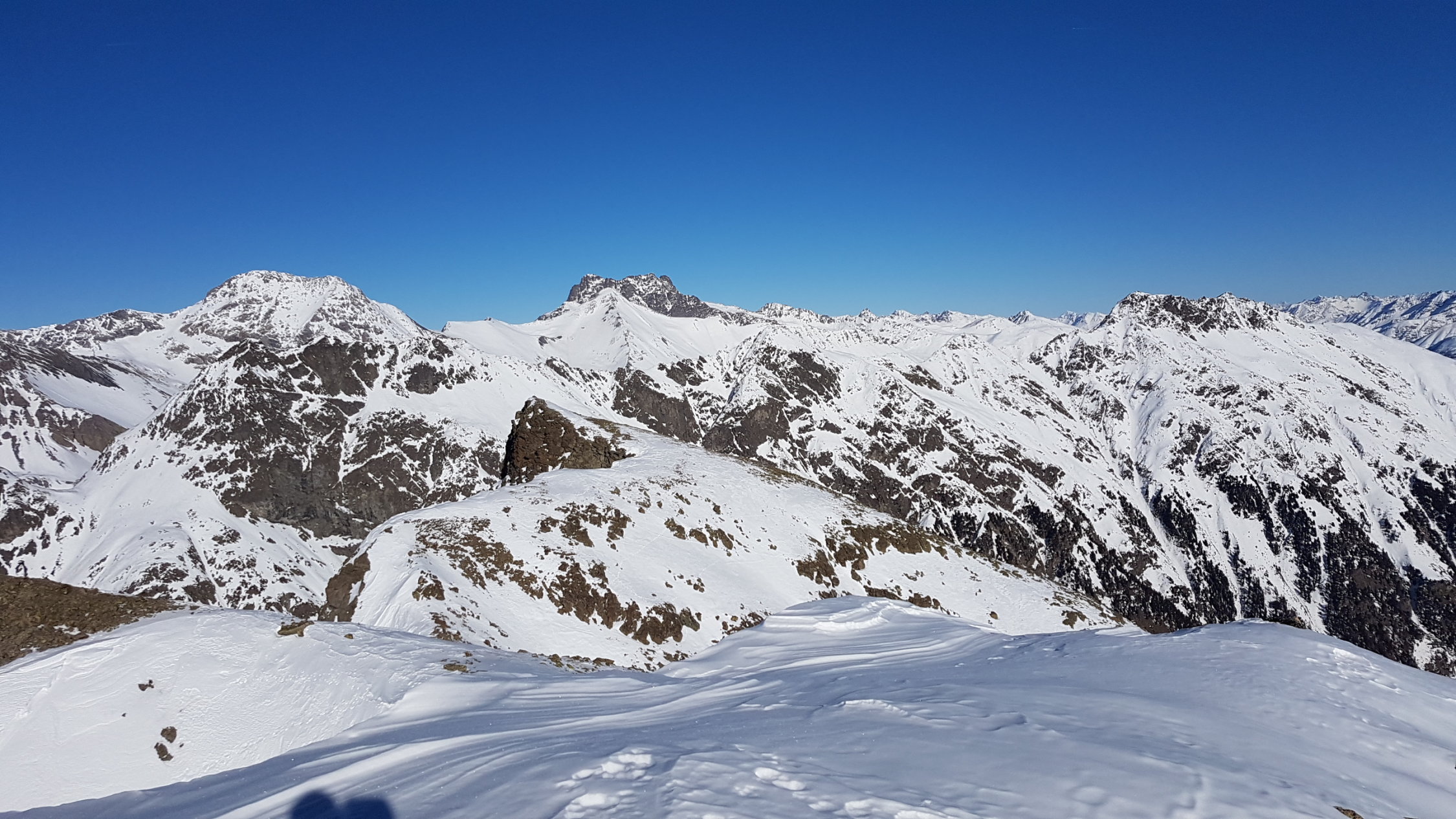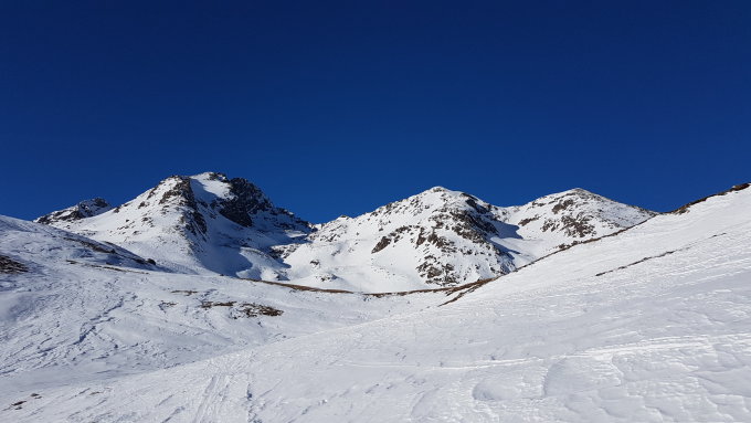 Um 9:45 gestartet. Beim Eingang in den Wald bei Peidra Grossa muss ein paar Meter zu Fuss gehen. Im Wald Spur zum Teil rutschig. Im Gebiet Margunin stark windgepresster Schnee. Für den Steilhang die Harscheisen montiert, ist stellenweise hart. Konnte mit den Skis zum Gipfel.