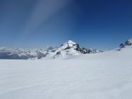 Wieder zurück zum Skidepot und eine schöne Hart-, Sulzabfahrt- und Styroporabfahrt genossen. Auf dem Gletscher wieder angefellt und eintönig die gleiche Route wieder zurück. Ich habe beim Rückweg noch den Bärenhorn mitgenommen. Um 17:20 war nun wirklich langsam Zeit für die finale Abfahrt. Das Wetter machte langsam zu und es begann plötzlich zu regnen.