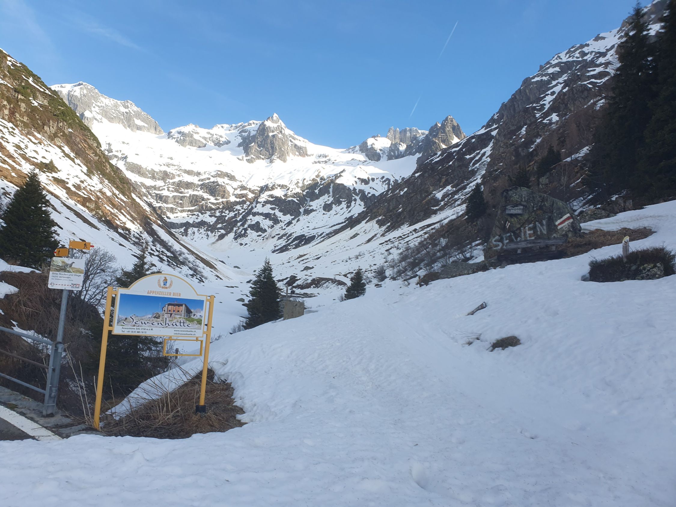 Das Chlialp Tal lag noch im Schatten und bei Rossplanagg ist ein grosser Lawinenkegel verstreut, somit heute lieber etwas weiter hinten bei Wissgand hochsteigen.