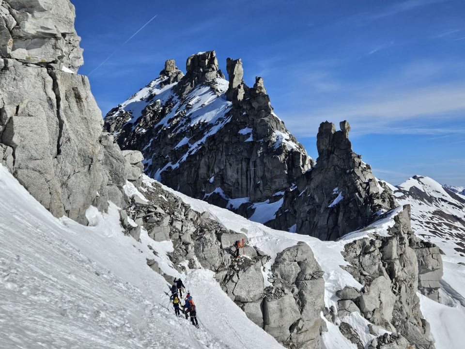 Wir sind vom Rifugio Claudio e Bruno über den Sabbionegletscher aufgestiegen und dann über das Hohsandjoch nach Fäld ins Binntal abgefahren. Gute Bedingungen, lediglich am Schluss müssen die Skier eine halbe Stunde getragen werden.