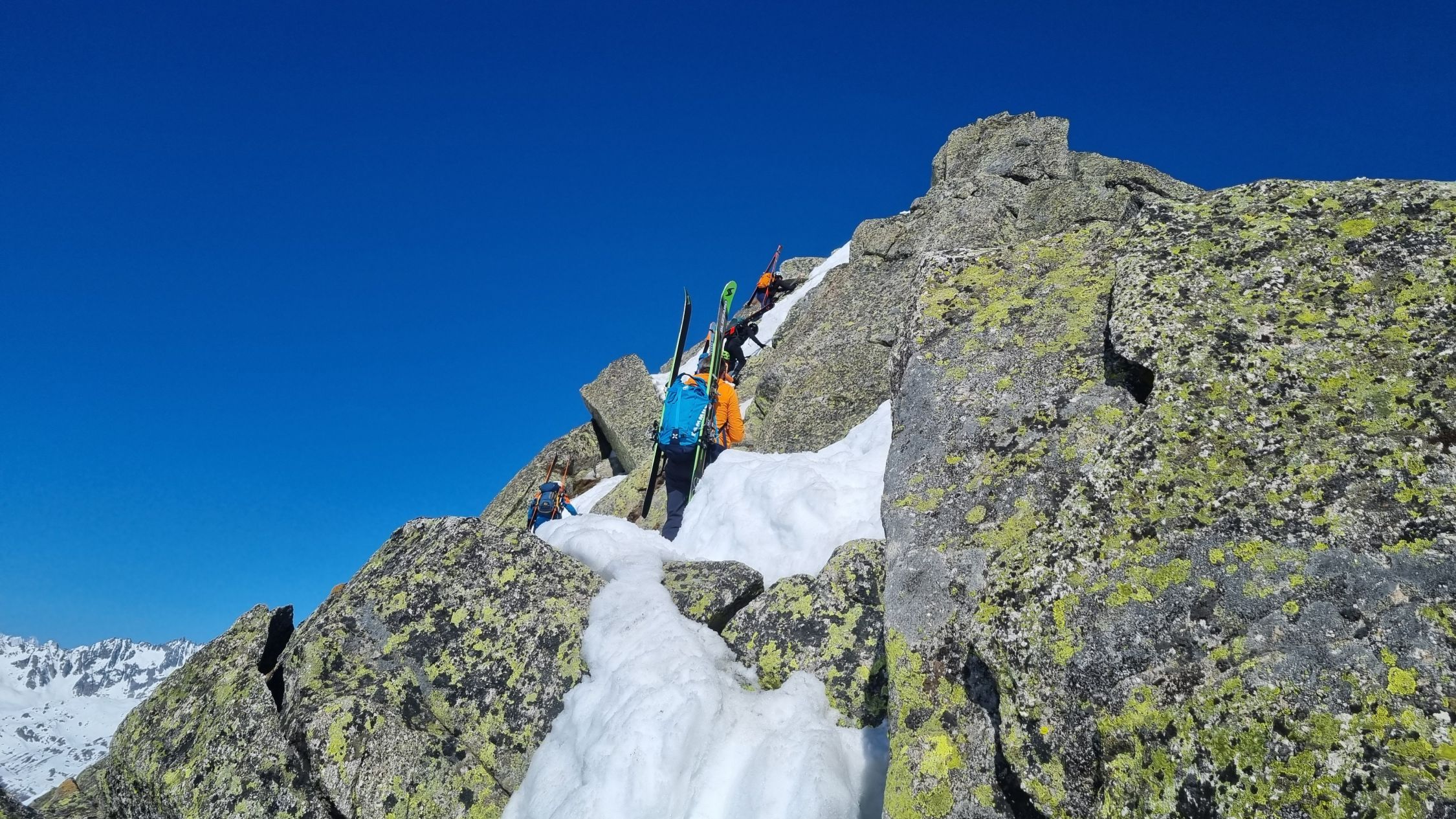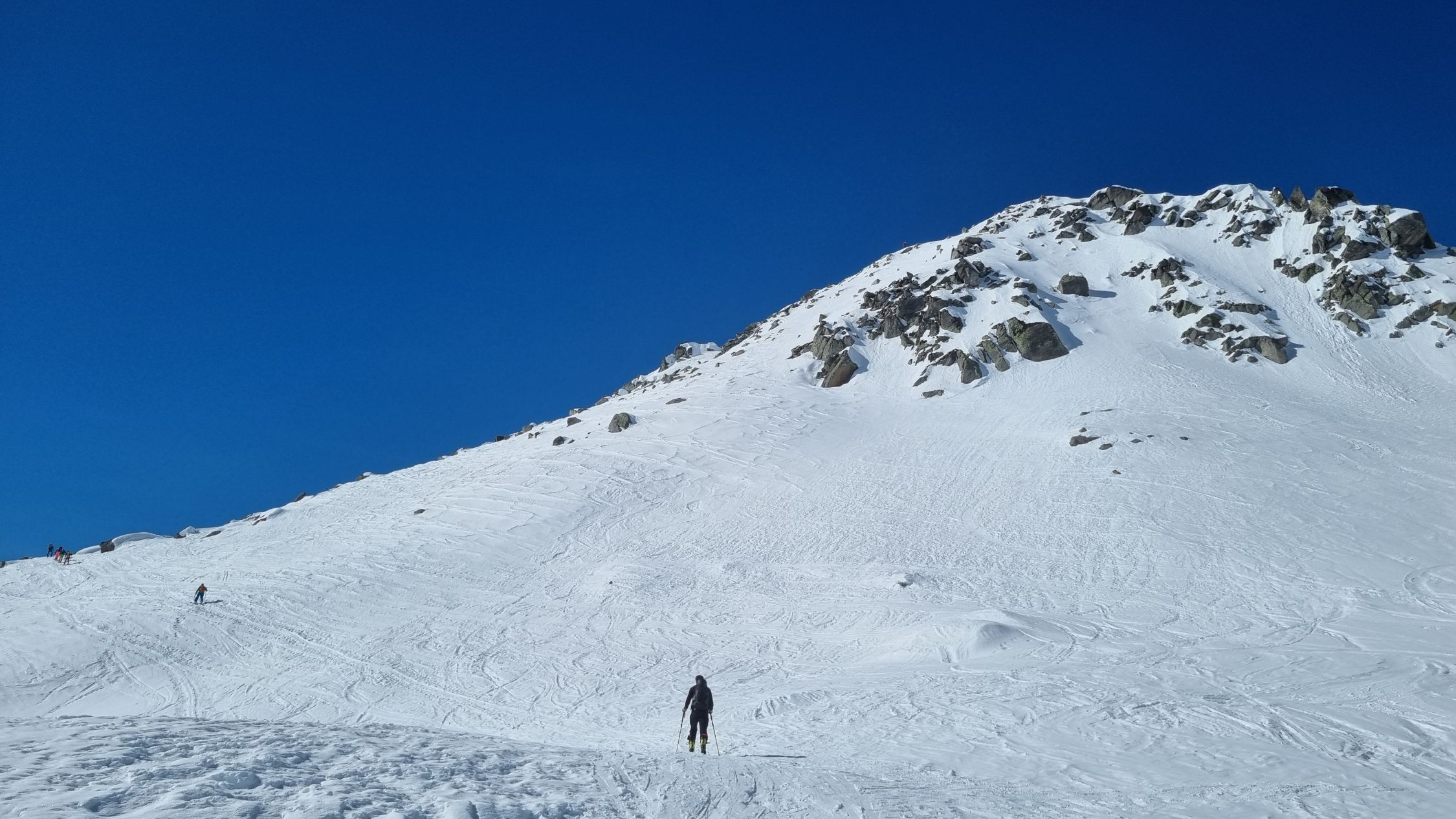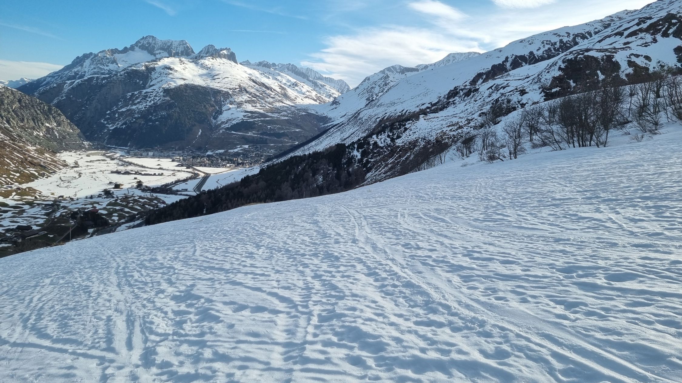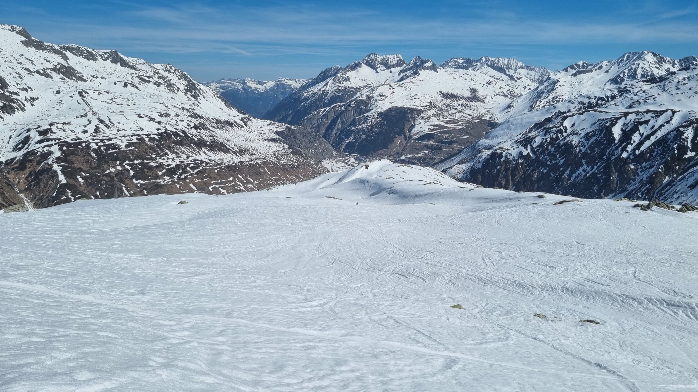 Gestartet um 07:30 Uhr. Trotz der Bewölkung in der Nacht zuvor war der Schnee gut gefroren. Durchgehend Schnee nach dem Tunnel. Die Harscheisen haben meinen Aufstieg einiges bequemer gemacht. Ich bin um 11:00 Uhr abgefahren. Gute Verhältnisse, nicht zu hart, nicht zu weich. Oben bei den Südhängen schon ziemlich weich.
