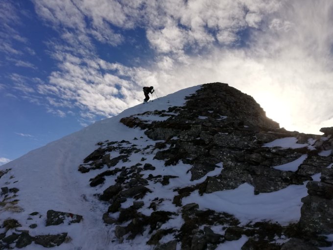 Ziemlich vereist im oberen Teil, also an manchen Stellen Harscheisen sinnvoll. Am letzten Stück zum Gipfel wären auch Steigeisen sinnvoll gewesen vor allem beim Abstieg. Relativ zerfahren, fühlte sich teilweise an wie auf der Piste. Im unteren Drittel teilweise noch nicht zerfahrenes Pulver :)